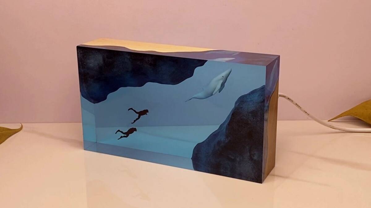 ナイトスタンド ライト 照明 間接照明 テーブルスタンド ダイビング 海の中 潜る 潜水 インテリア オブジェ 装飾 置物 海 クジラ ダイバー