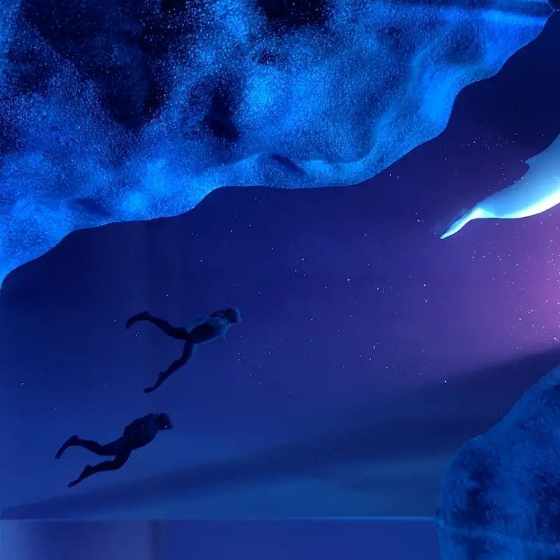 真っ青な海の中で泳ぐ可愛らしいクジラとダイバーが描かれたナイトライト。