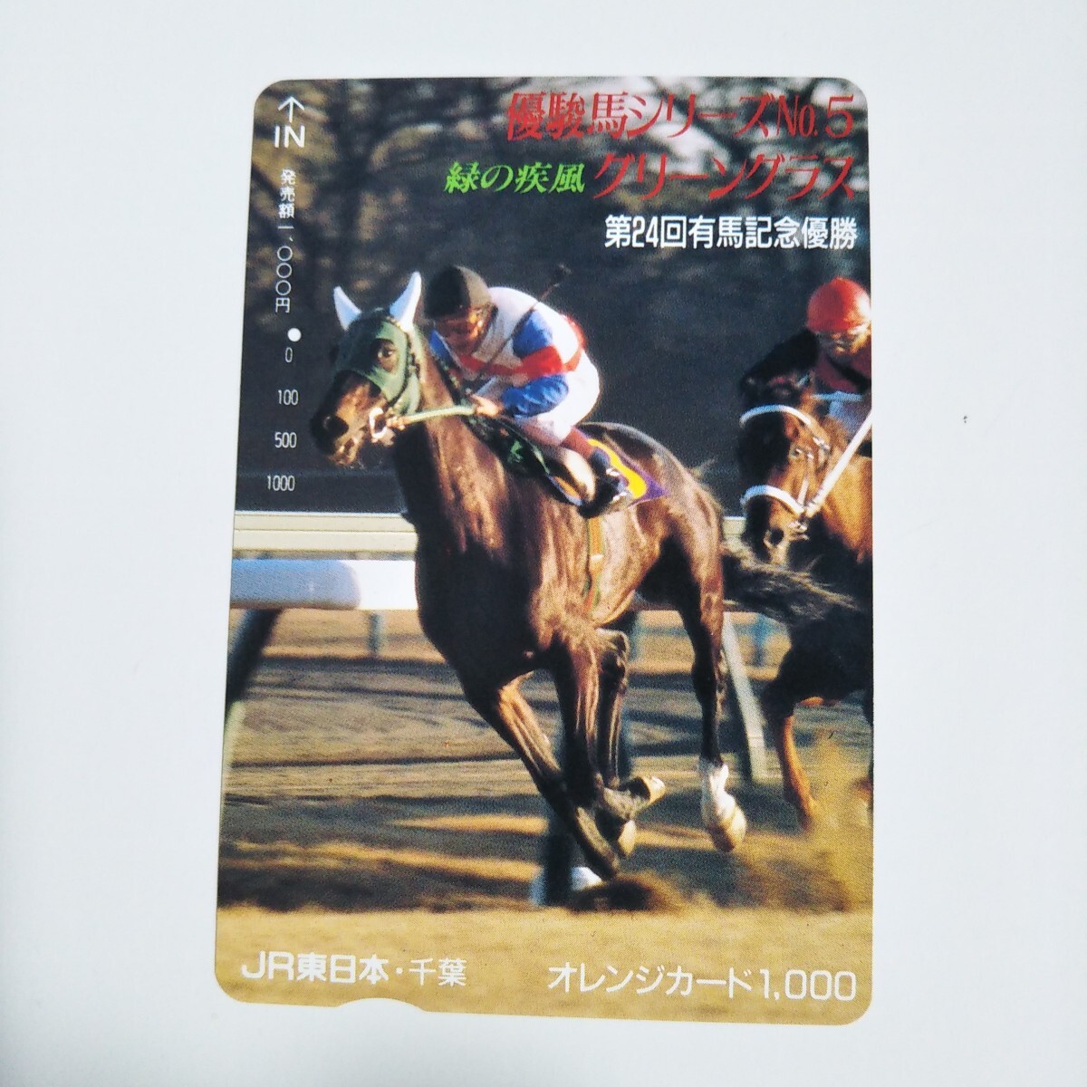 JR東日本・千葉 優駿馬シリーズNo.5 緑の疾風グリーングラス 第24回有馬記念優勝 オレンジカード 使用済み 1穴