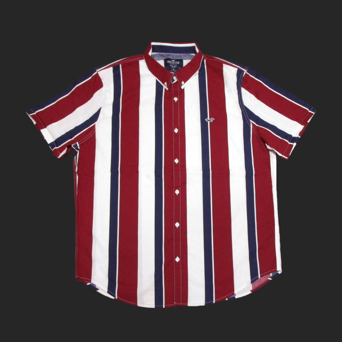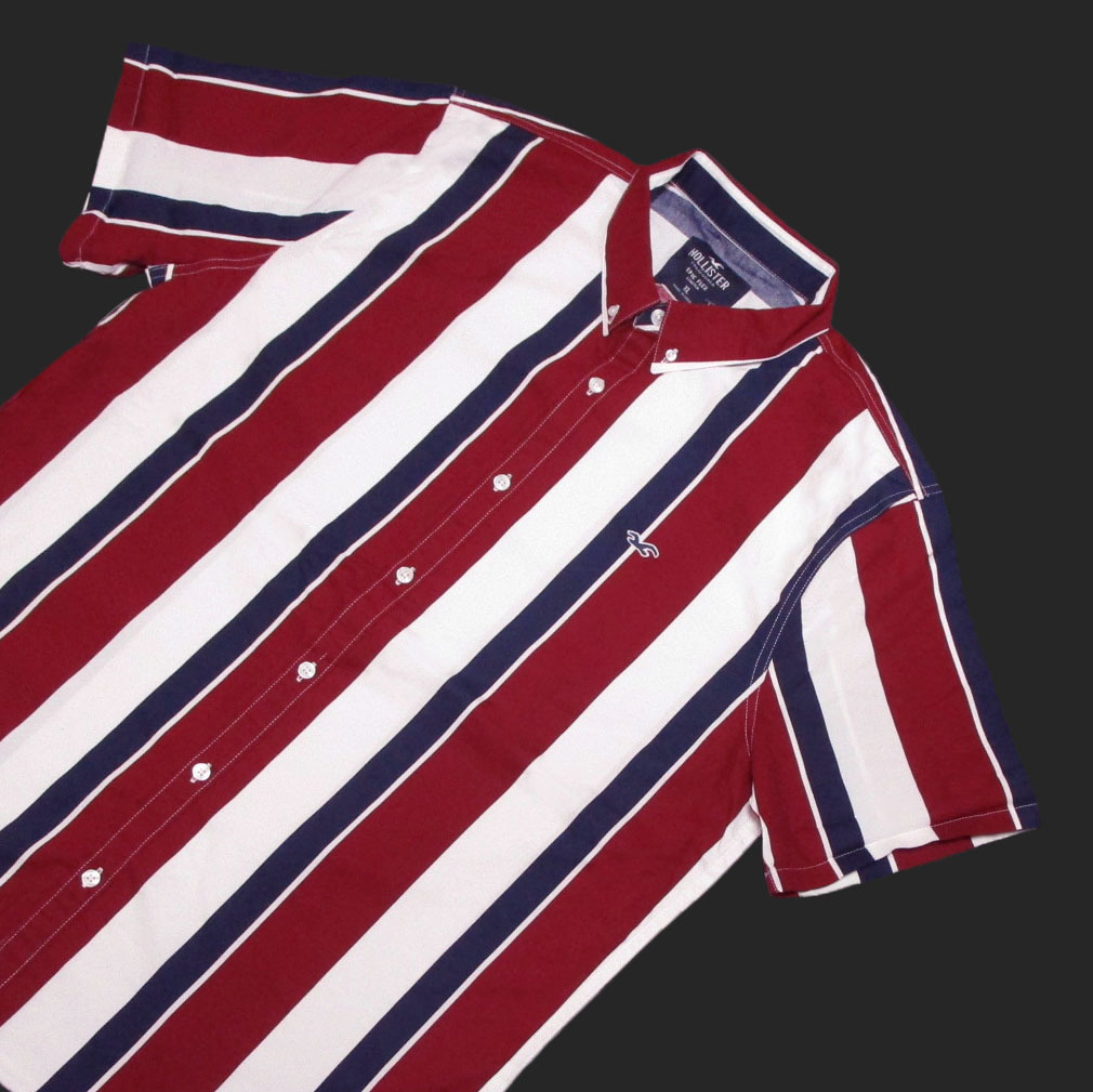 | ★Hollister/ホリスター★ストライプポプリン半袖ボタンダウンシャツ (White/Burgundy/Navy/XL) | |||