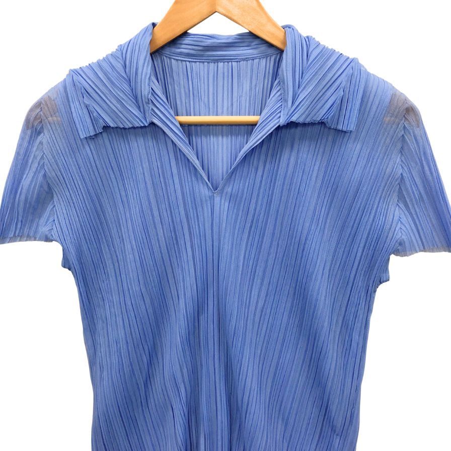 美品◆カットソー プリーツプリーズ イッセイミヤケ 半袖カットソー ブルー レディース サイズ3 PP43-JK542 PLEATS PLEASE【AFB43】