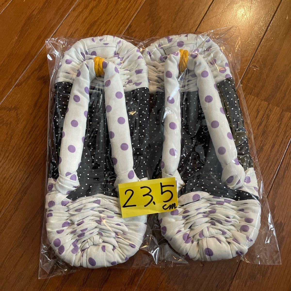 ぞうりの全長は23.5センチ程度ですので、足のサイズは22センチから24センチ程度の方向けですが、ぞうりですので大きめ小さめがあまり気にならないかと思います。