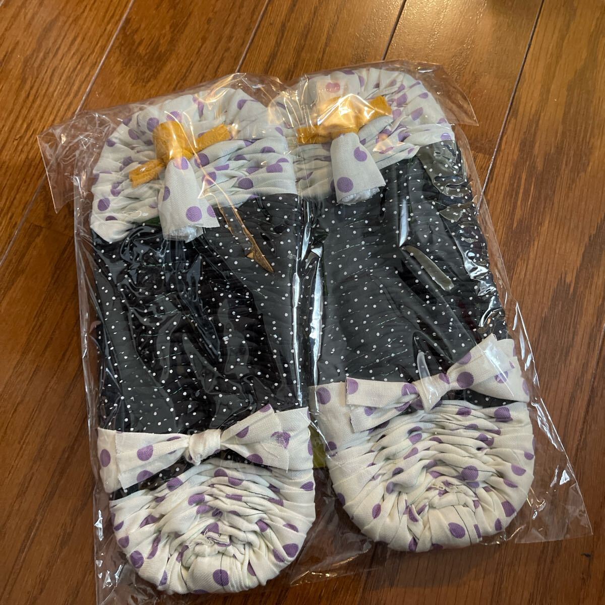 新品未使用の布のほか、リサイクルの布を使用しての手作りですので左右の大きさ・デザインに若干の差異がある場合がありますのでご了承ください。