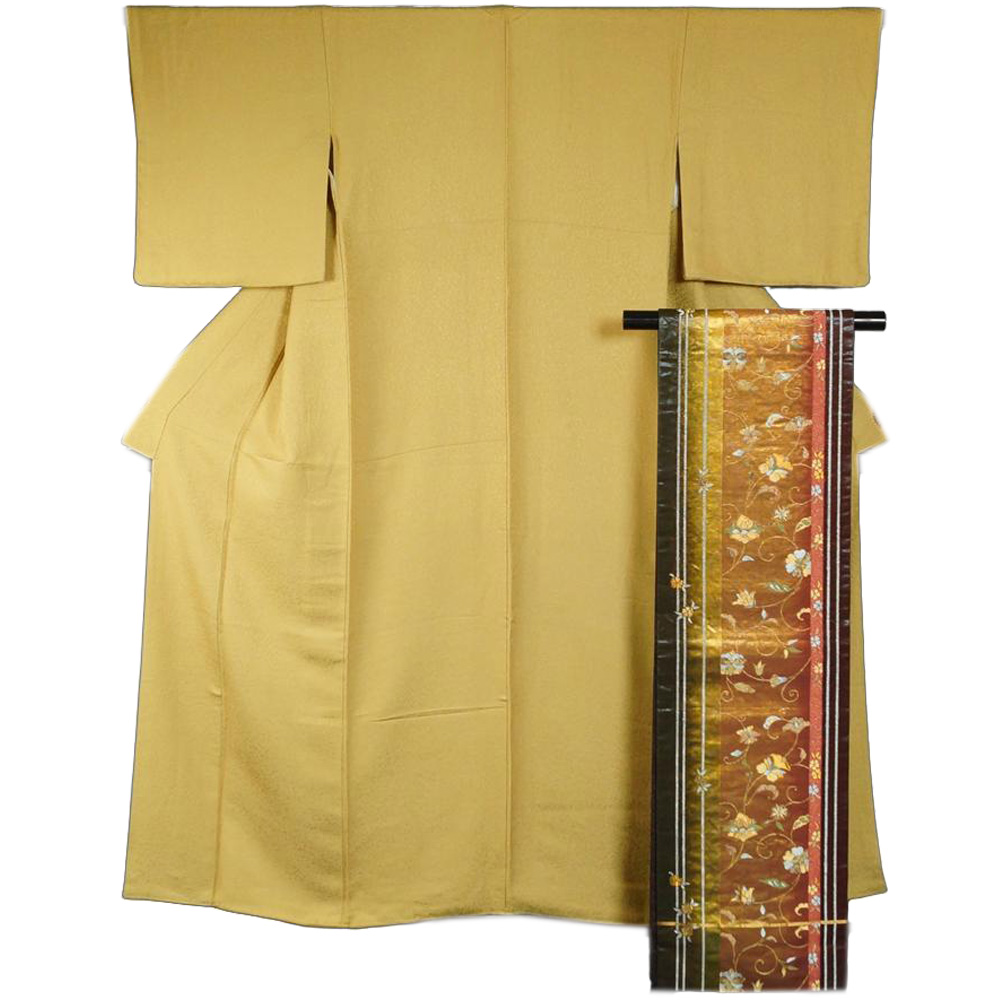 | 品 名 | 着物セット 未使用品 色無地・西陣 袋帯 2点 セット 家紋無し Sサイズ 無地 【中古 リサイクル着物 色無地 着物 色無地 ちりめん 正絹 リサイクル色無地 初釜 お茶 お茶会 】 | ||