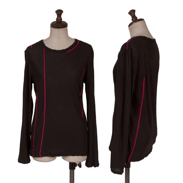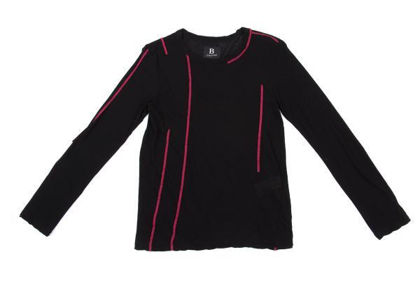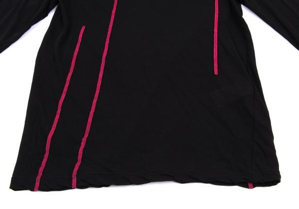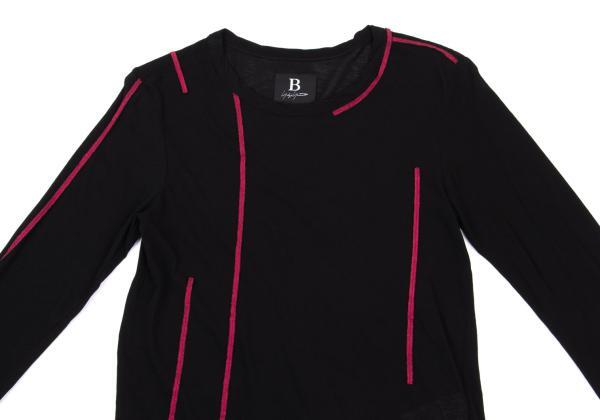 | ビーヨウジヤマモトB Yohji Yamamoto コットンステッチ装飾カットソー 黒ピンク2 |