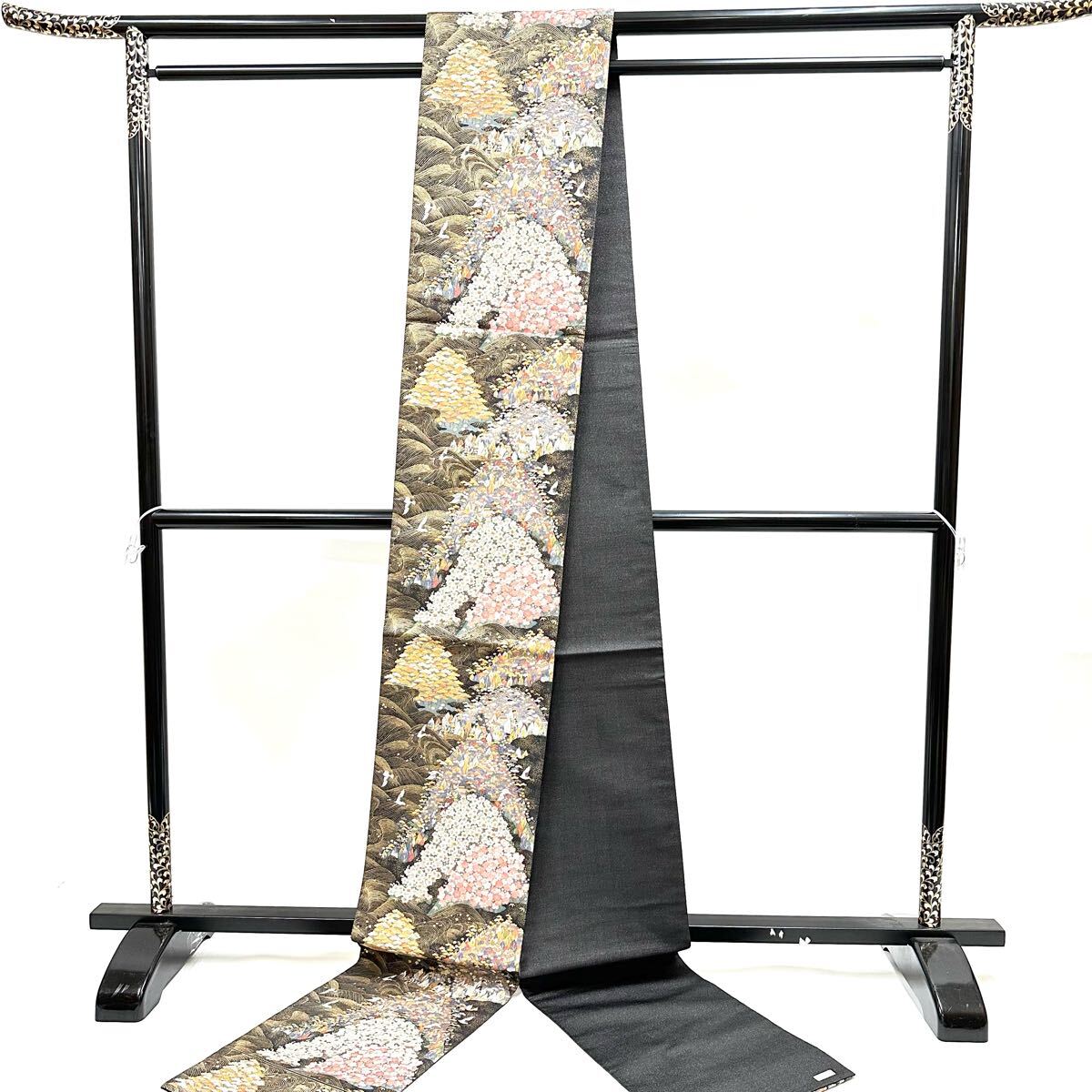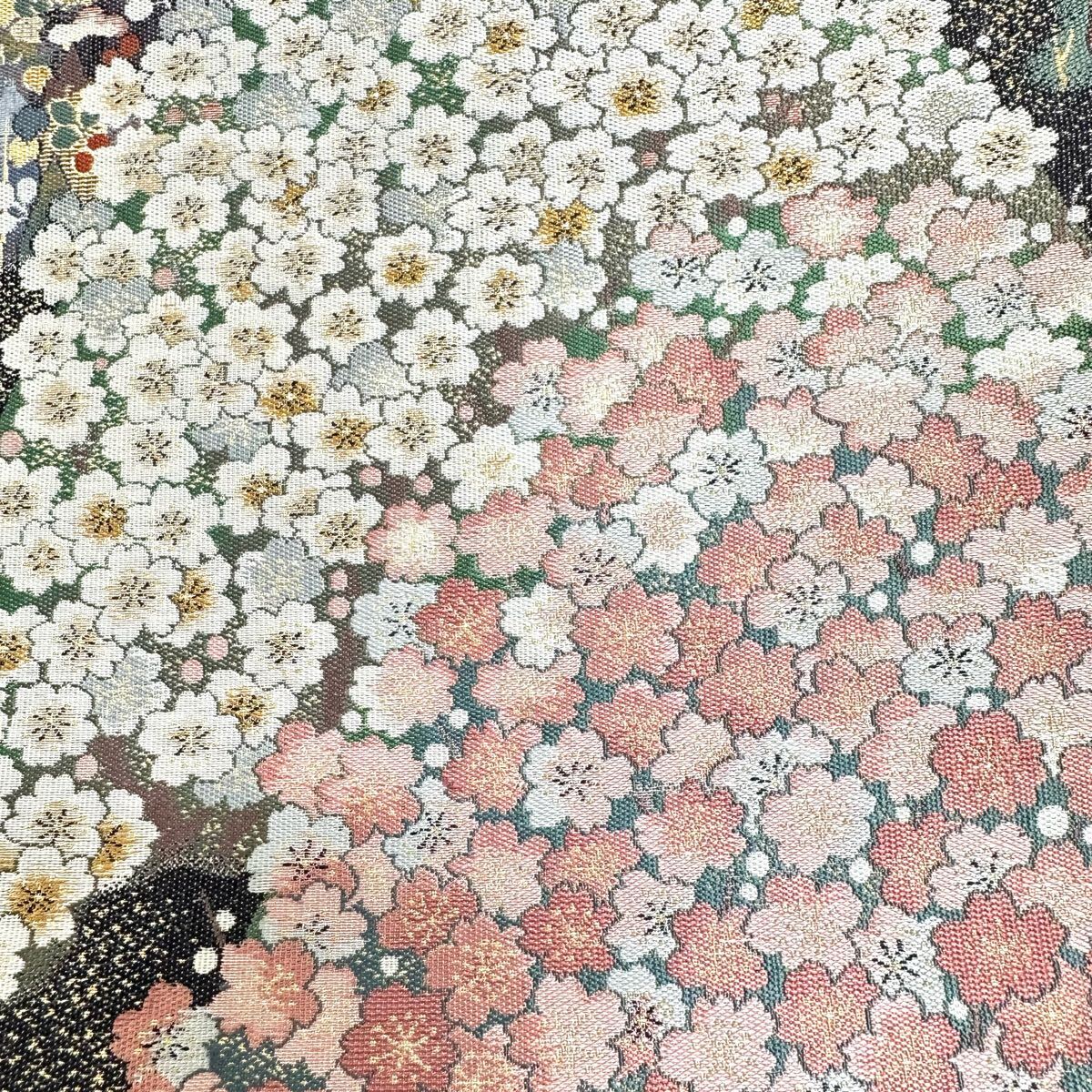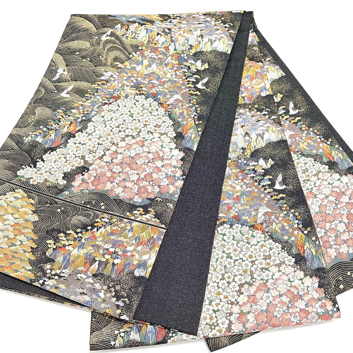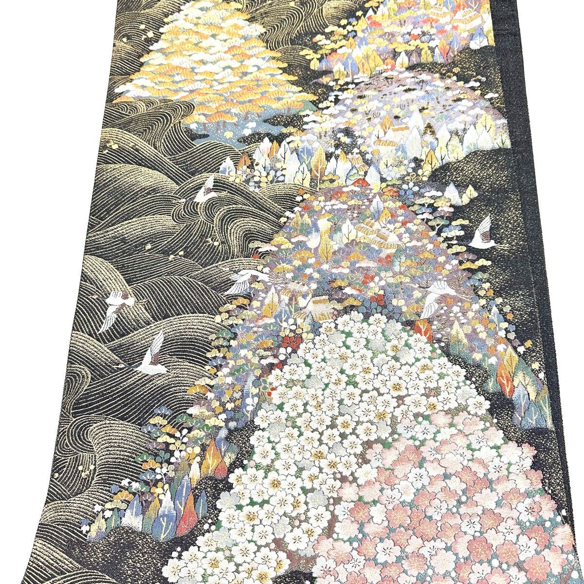 【七福】c577 逸品 高級品 正絹 袋帯 六通 桜 鶴 波 金糸 豪華