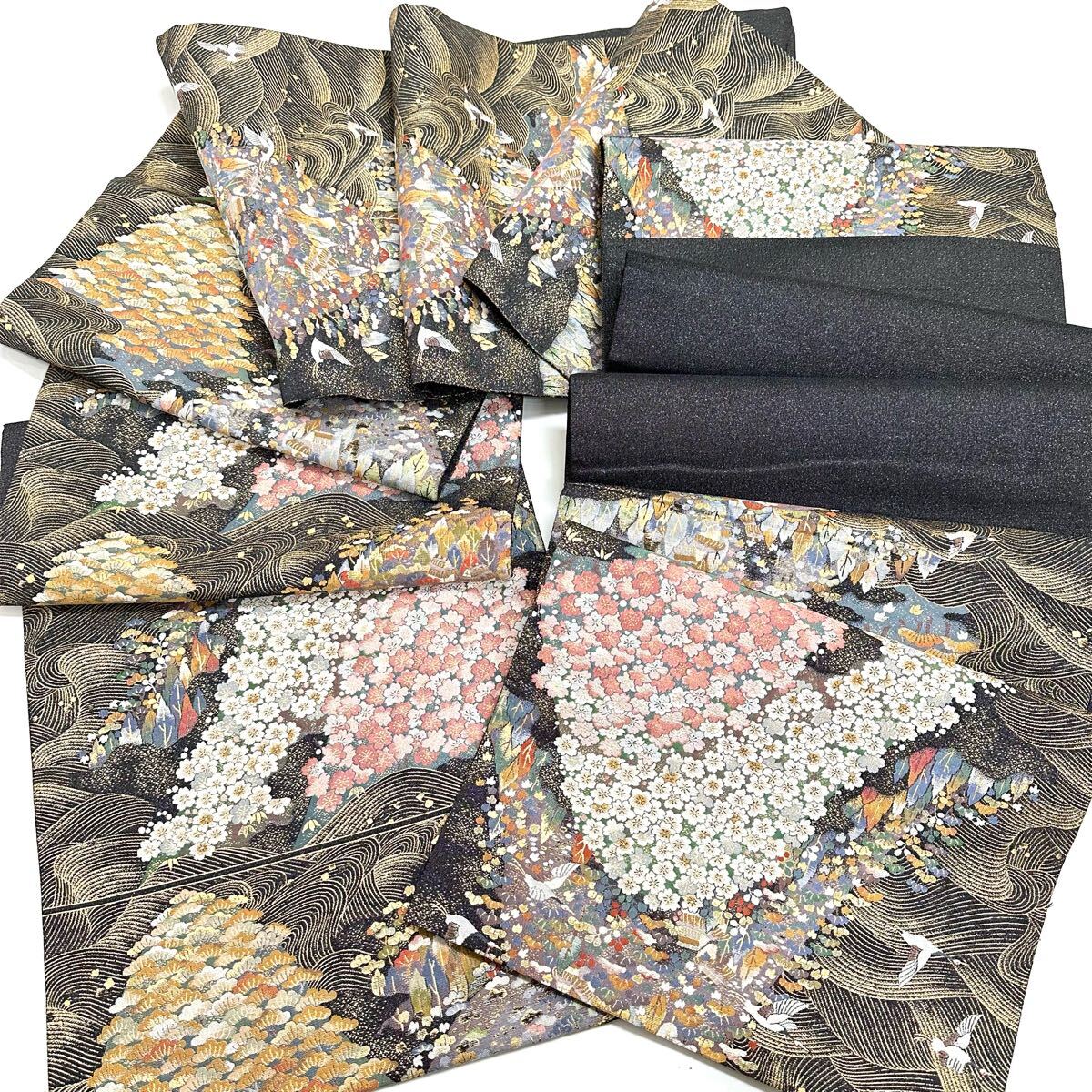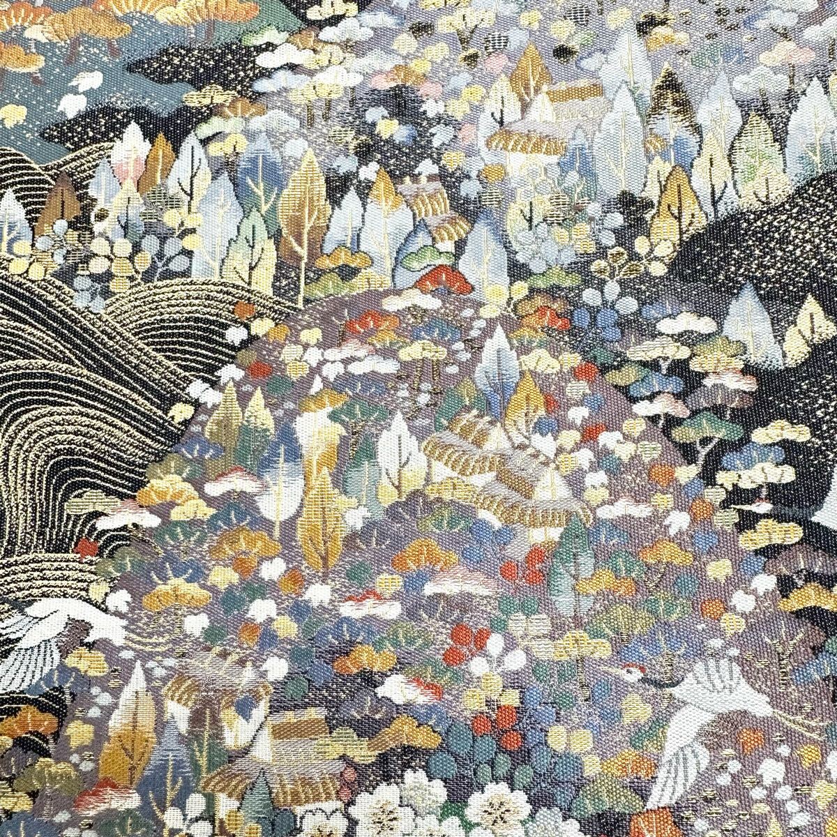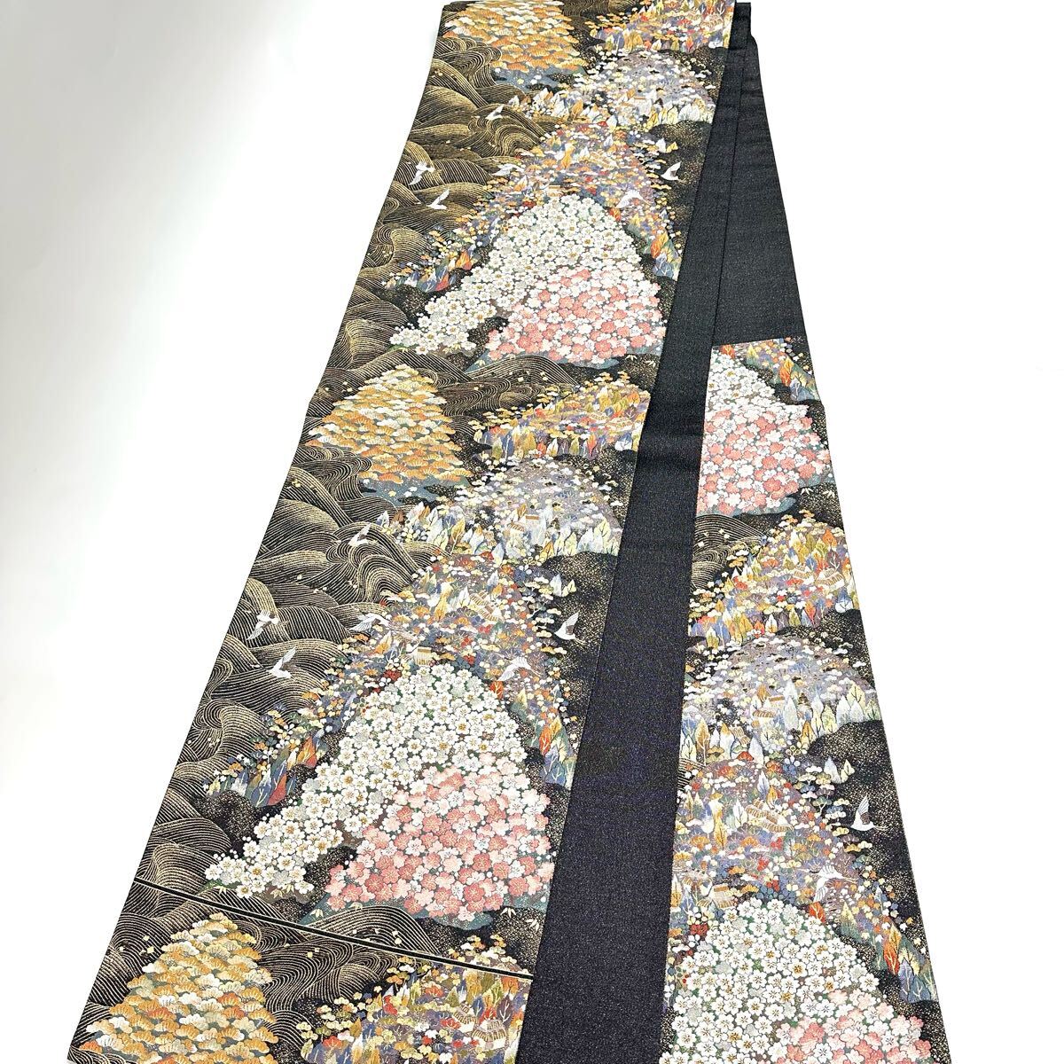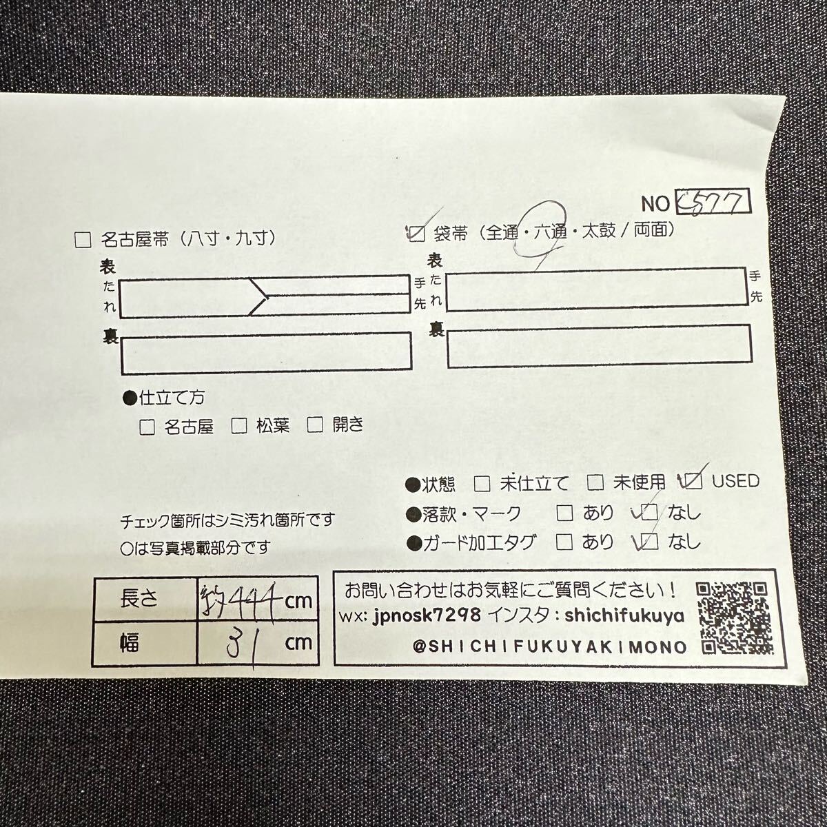 【七福】c577 逸品 高級品 正絹 袋帯 六通 桜 鶴 波 金糸 豪華