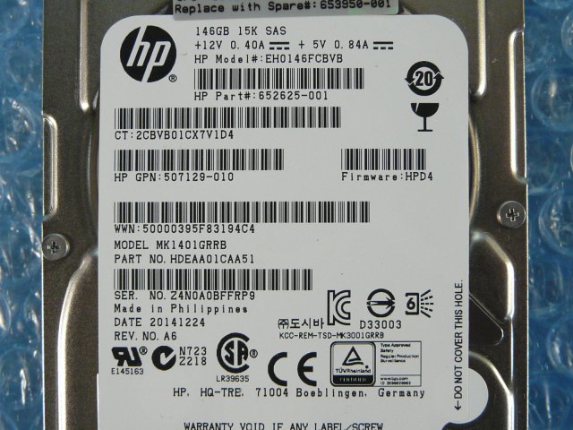 HP EH0146FCBVB 146GB 2.5インチ SAS 6G 15K(15000)rpm MK1401GRRB 15mm ![]() | |||||||||||||