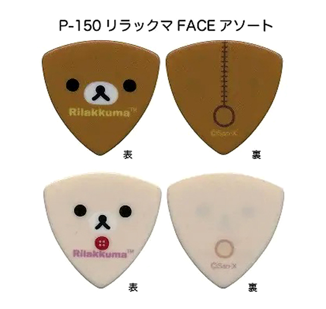 リラックマ限定品 新品 / ギターピック Rilakkuma Face / FERNANDES P-150 フェルナンデス ピック 2セット/4枚。 ”リラックマ”と”コリラックマ”の ” FACE“ピック。 画像は2種類の裏表ですが、”顔” と ”うしろ姿”が両面にプリントされた、とっても可愛いキャラクターピックです。 正規品、 2種類、2セット、合計4枚を全国どこでも送料無料でお送り致します。 ■材質:セルロイド ■形状:トライアングル