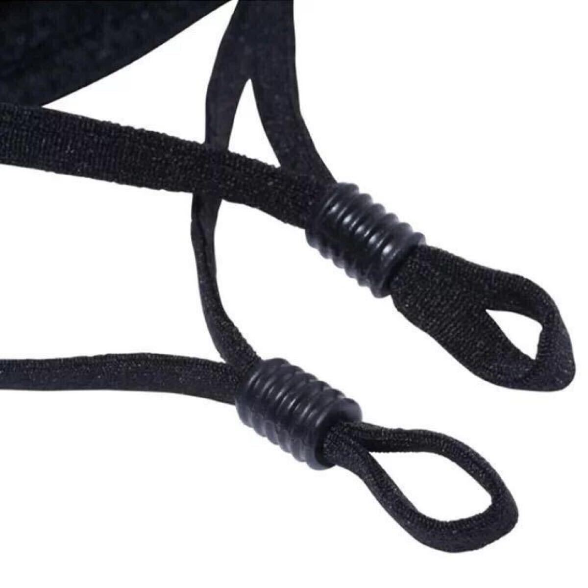鼻部分にワイヤーが入っており耳の紐はゴムで調整可能です。