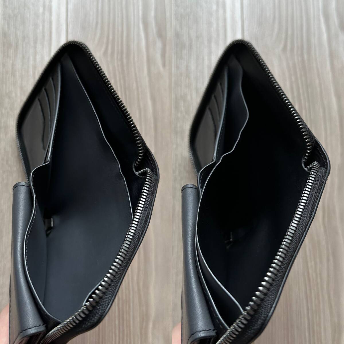 二つ折り財布ですが、ラウンドファスナー型の為、お財布が開いたままになったり、閉じたときに型崩れでズレてしまう、といった2つ折り財布あるあるの心配が御座いません。