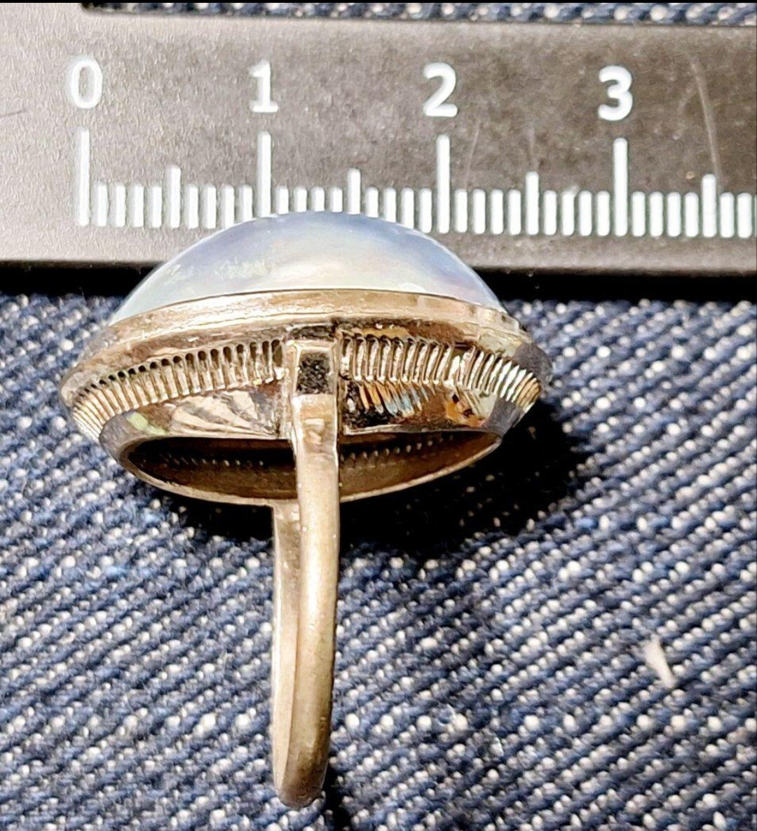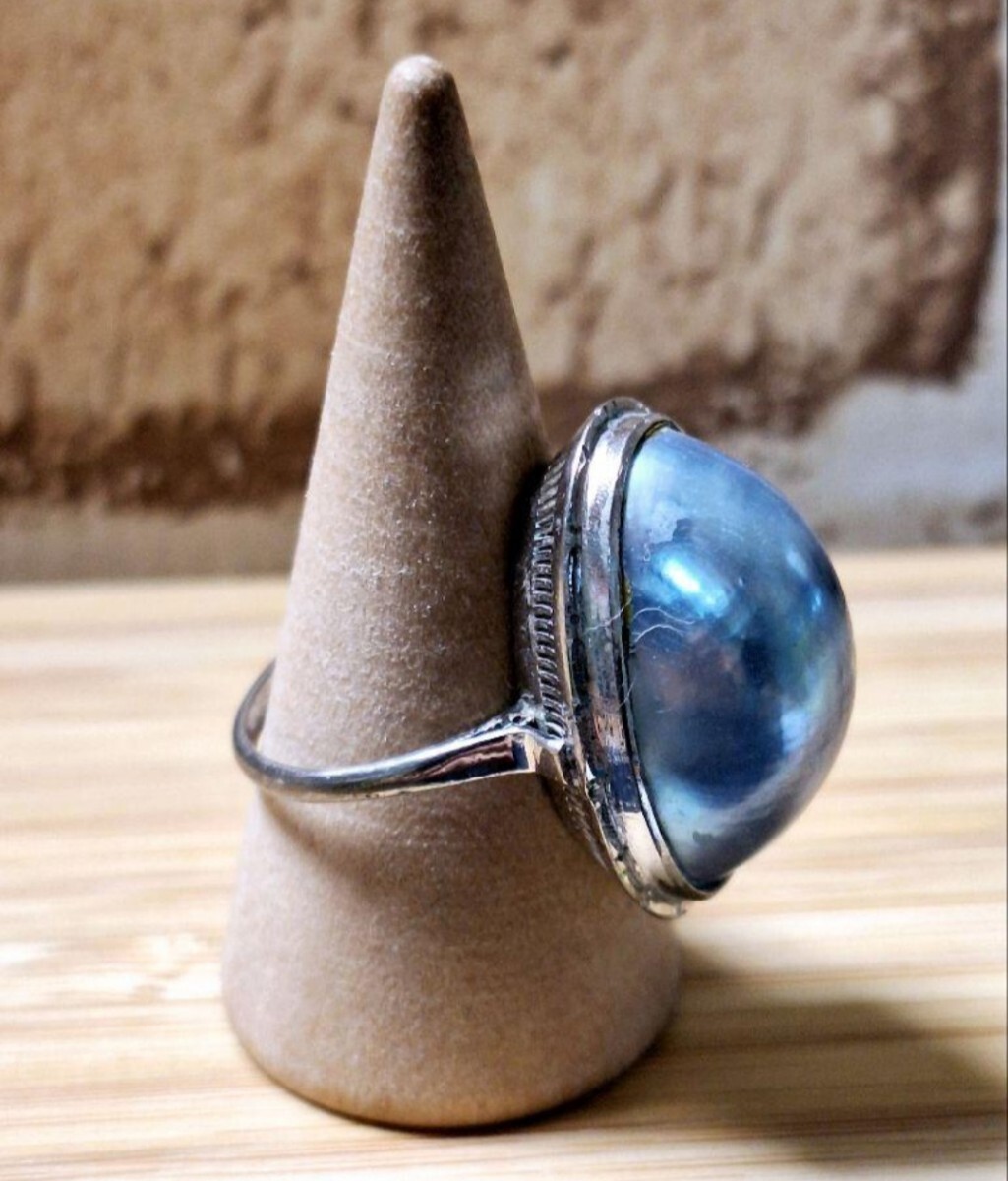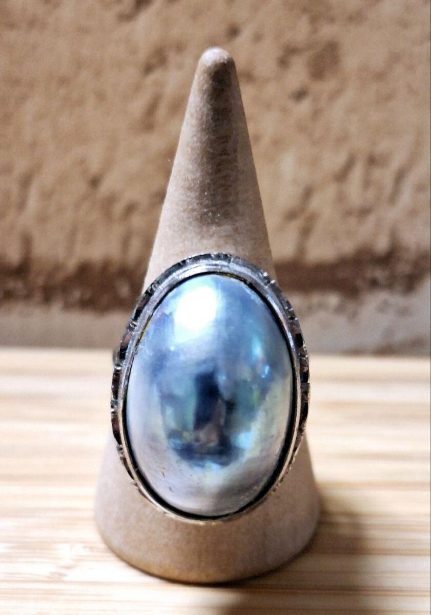 本物ビンテージ 徳大な約25㎜のブルー系マベパール シルバーリング 15~16号サイズ 総重量5.6g