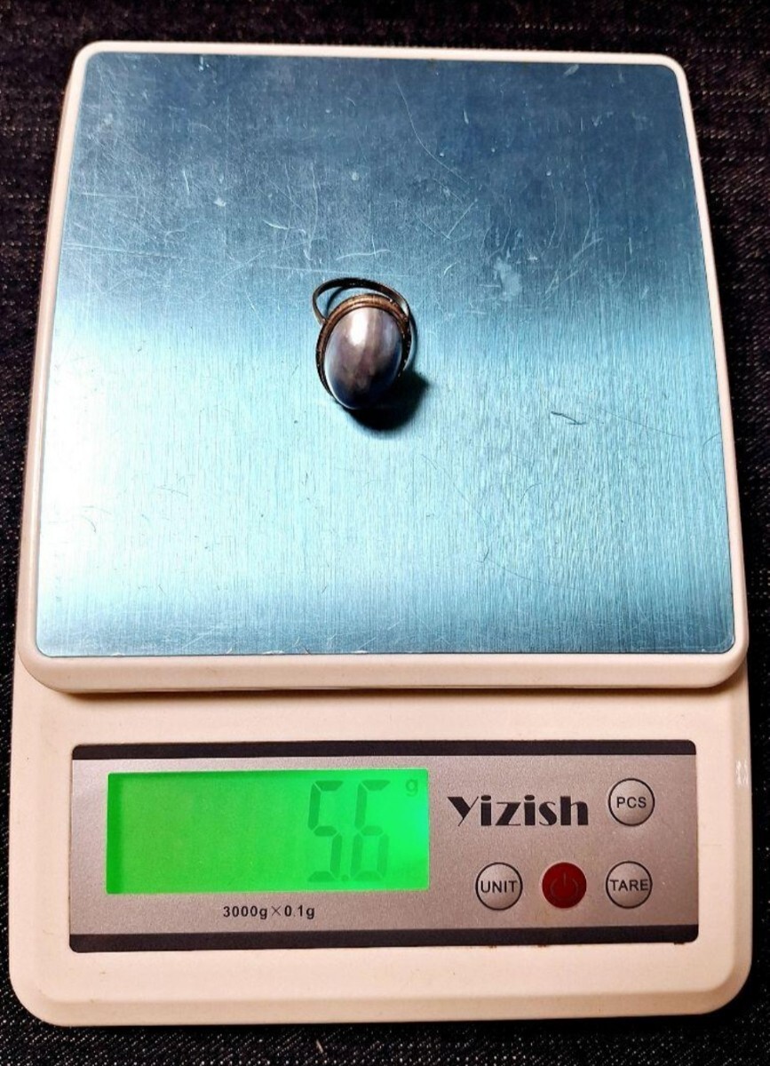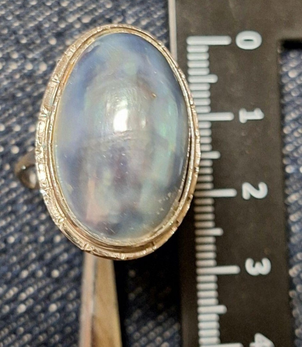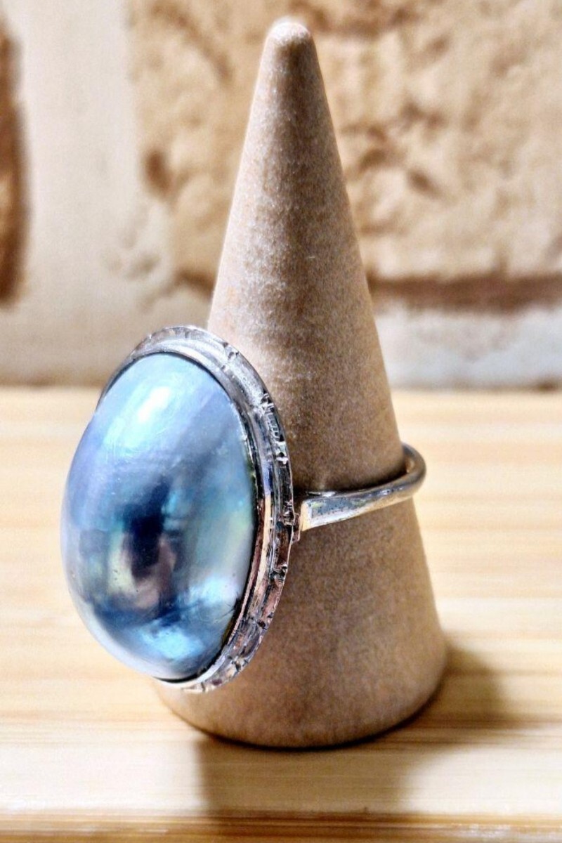 本物ビンテージ 徳大な約25㎜のブルー系マベパール シルバーリング 15~16号サイズ 総重量5.6g
