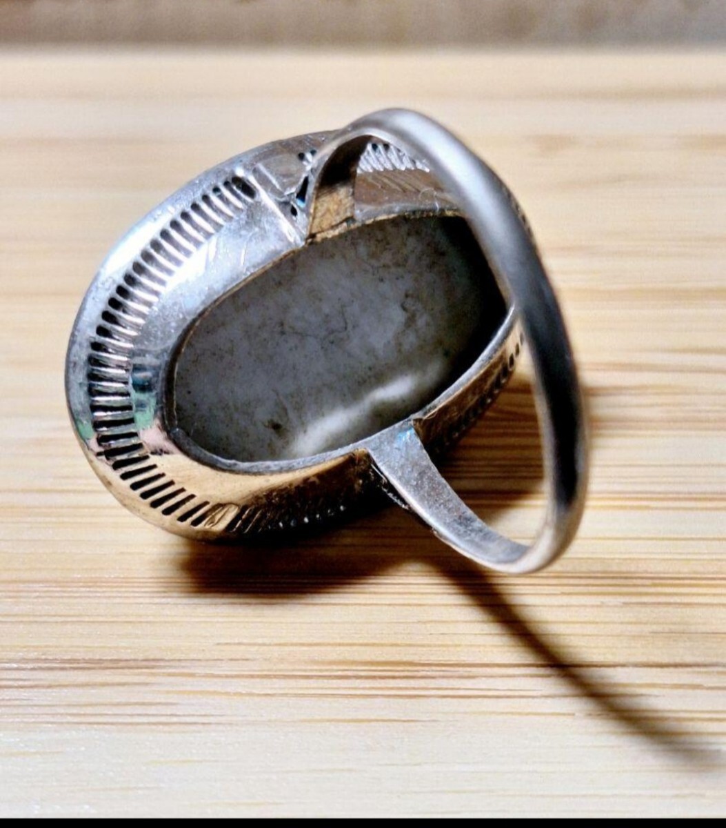 アンティーク 指輪 60s~70s 年代物のビンテージ シルバーリング(Silver刻印あり)15~16号サイズ 徳大なマベパール付き!海外に古着などビンテージ物を買い付けてる方からの入手品!ダメージありませんが大変古い年代物ですのであくまでも現状渡しになります。ビンテージ、アンティークがお好きな方や古着など愛用の方に好まれるリングです。リング内側にSilverの刻印あります。新品をお探しの方、ビンテージに御理解のない神経質な方は御遠慮願います。