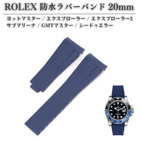 ロレックス ROLEX 交換 防水ラバー 時計バンド 腕時計ベルト 取付幅 20mm  ヨットマスター サブマリーナ GMTマスター シードゥエラー エクスプローラー エクスプローラー2 ブルー