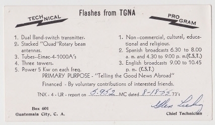 | 商品名 | ベリカード 記名無 TGNA 1955年 BCL |