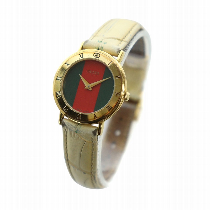グッチ GUCCI 3000.2.L 腕時計 ウォッチ クォーツ インターロッキング レザーベルト シェリーライン ゴールドカラー 金色