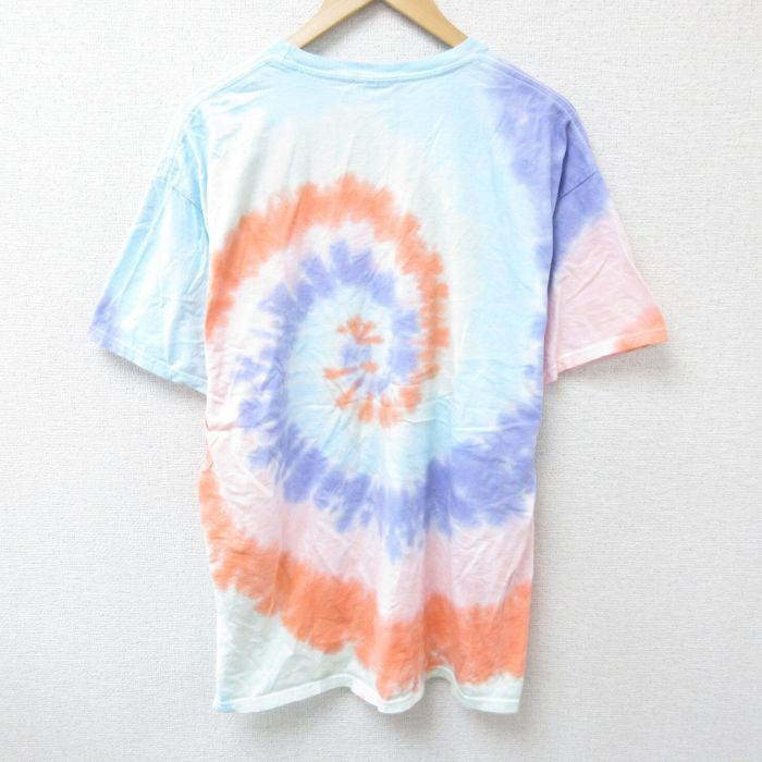 【商品名】 XL★古着 半袖 Tシャツ メンズ メッセージ 大きいサイズ コットン クルーネック 水色他 タイダイ