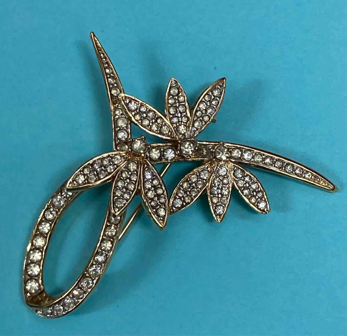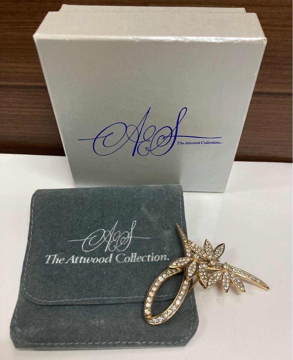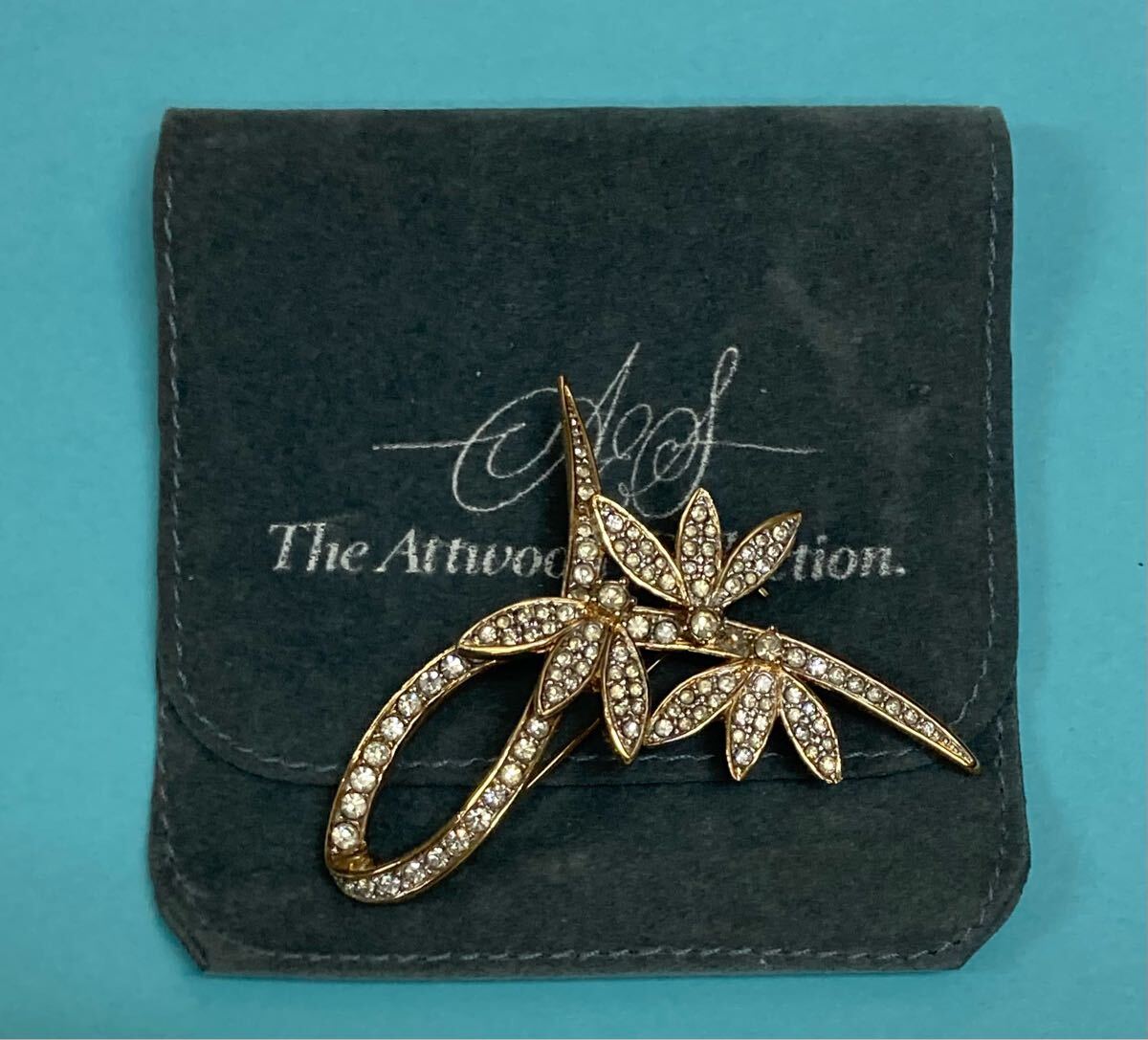 美品 ♪ Attwood and Sawyer アトウッド&ソーヤー ♪ ブローチ フラワー 花モチーフ ラインストーン A&S The Attwood Collection 保存袋付