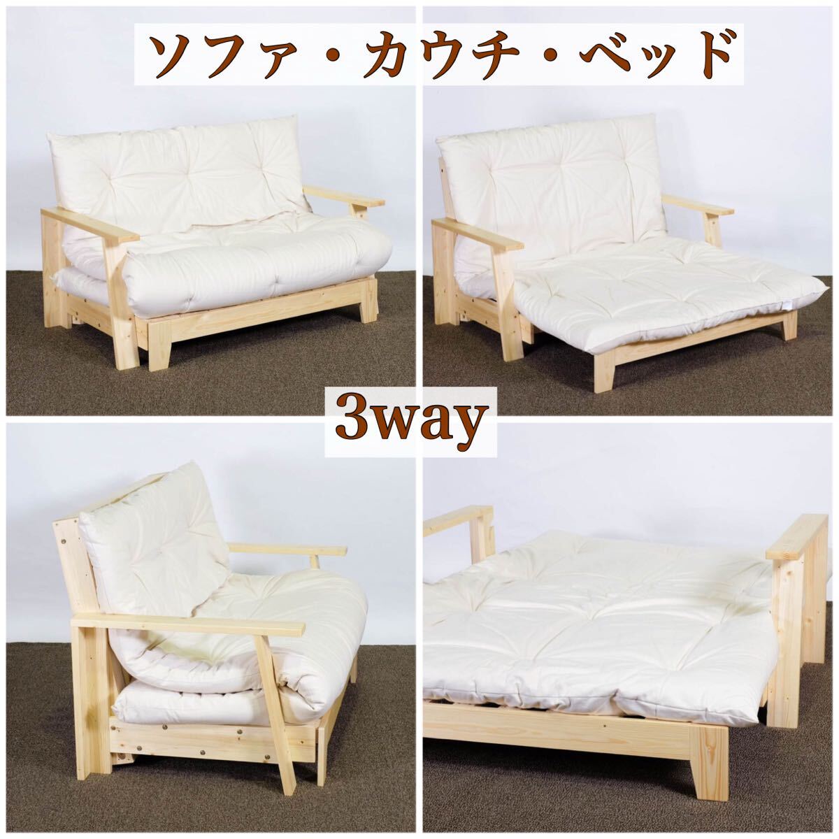 新品 北欧パイン ソファベッド 伸長 セミダブル ソファ カウチ ベッド カントリー パイン材 3WAY 伸張 木製 すのこ 省スペース 別荘