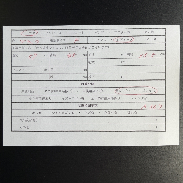 ・衣料品はたたみシワがある場合がございます。