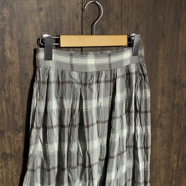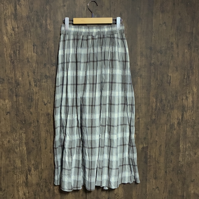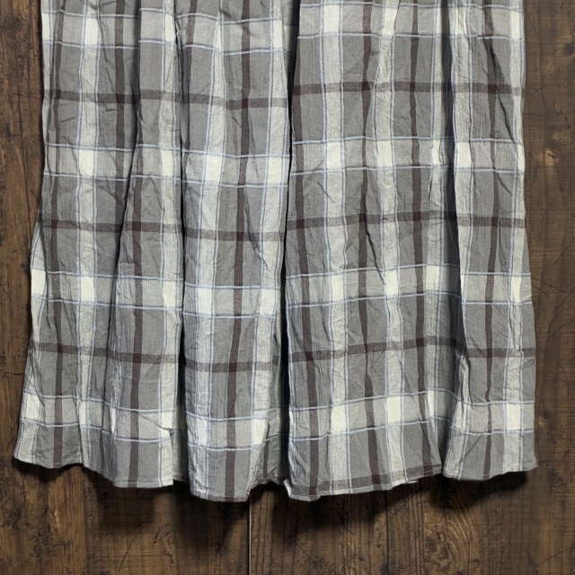 A375◇Lugnoncure | ルノンキュール チェック柄コットンロングスカート グレー×マルチカラー レディース フリーサイズ 中古品