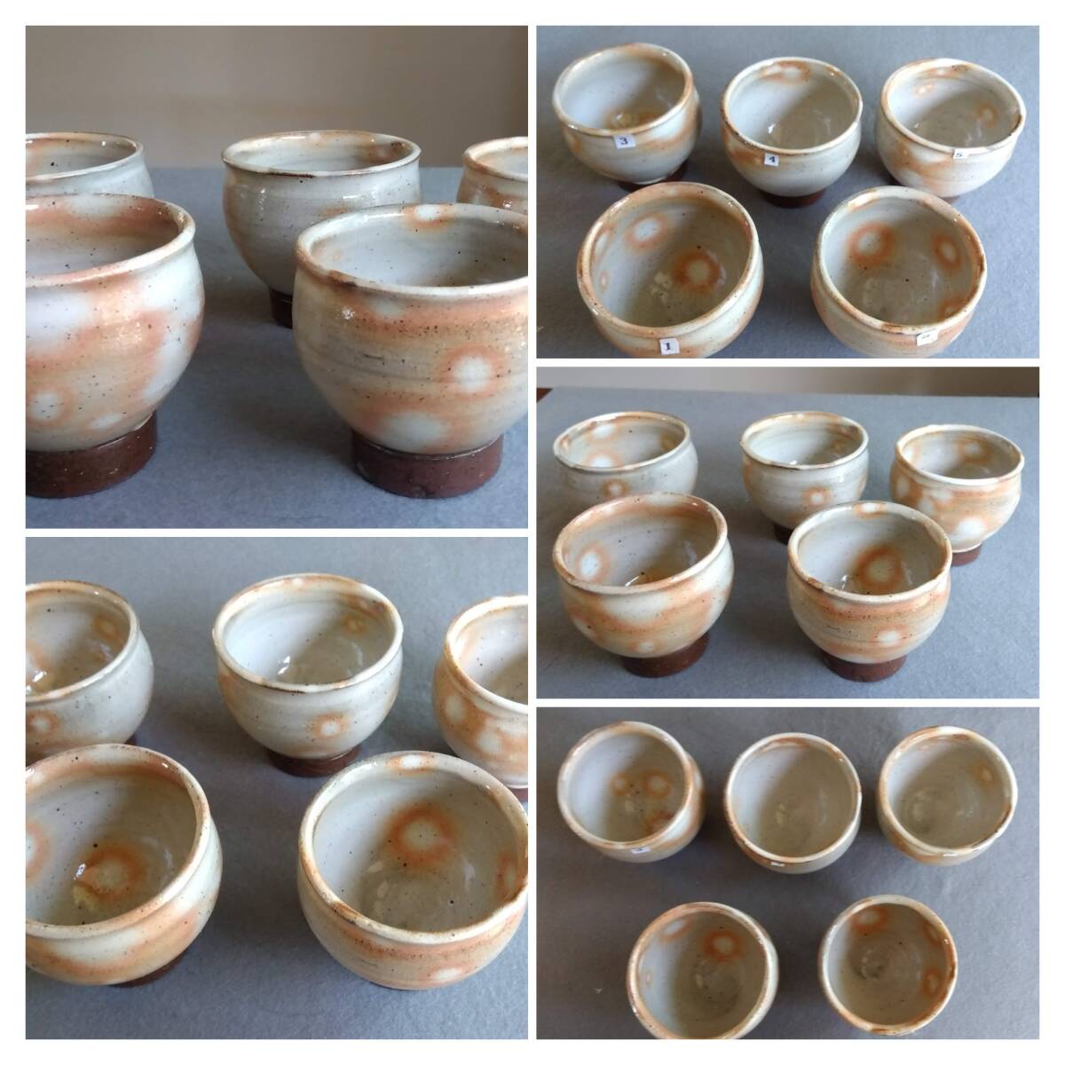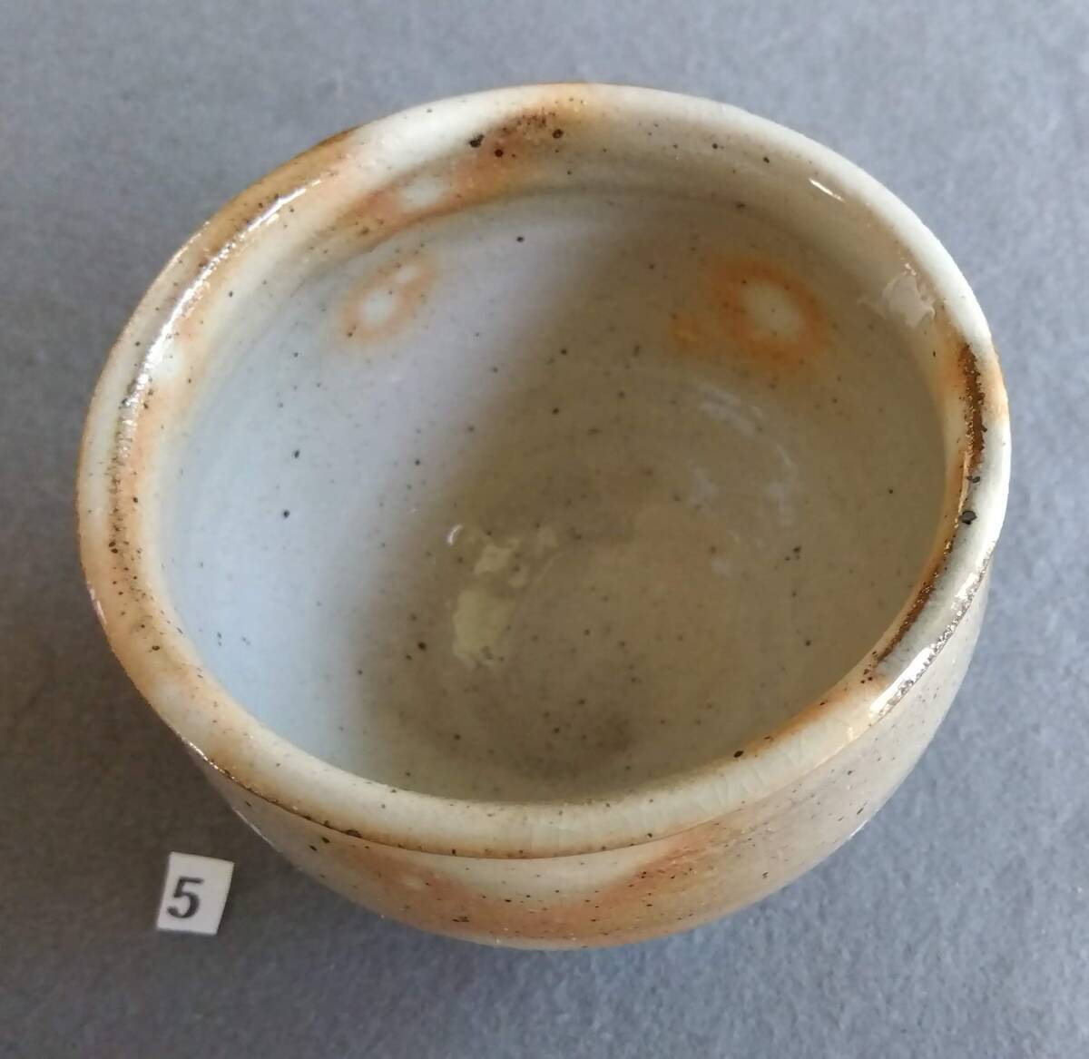 美濃焼の名工 工藤陸雄 南窯 志野【御本手】湯五客セット 4mm程の玉縁口縁から60mm程の内見込み部及び腰胴器全体にかけて豪快かつ繊細なへら使いで どっしりとした重量感/躍動美/風趣が溢れる器です。半透明の白い長石釉が器全体を包み込み 薄いピンク色斑点がまるでホタル模様の如く美しく漂い舞ってお茶の香り風趣を別世界へと誘ってくれます。師の卓越した【還元焼成】技術が 見事に飄逸躍動感野趣溢れ 日常雑器を超えた世界に導いてくれます。 サイズ:口径80/82mm見込み深さ58/60mm全高75/78mm高台底径X高さX底幅45/50X15X3mm包装:クラフトボックスプチプチ包装