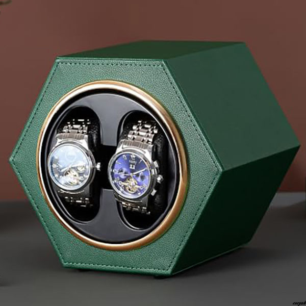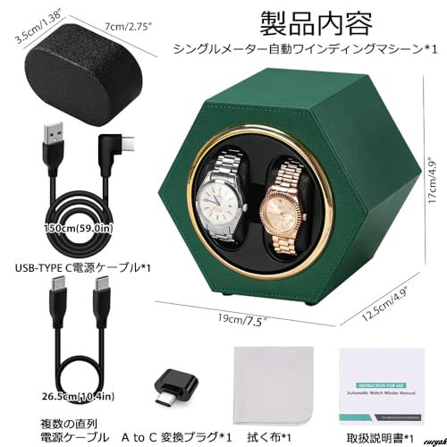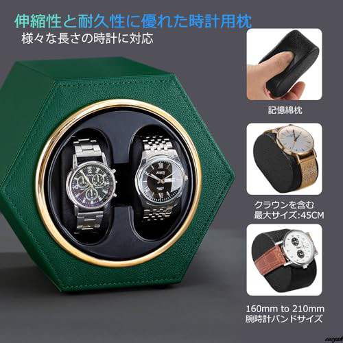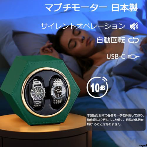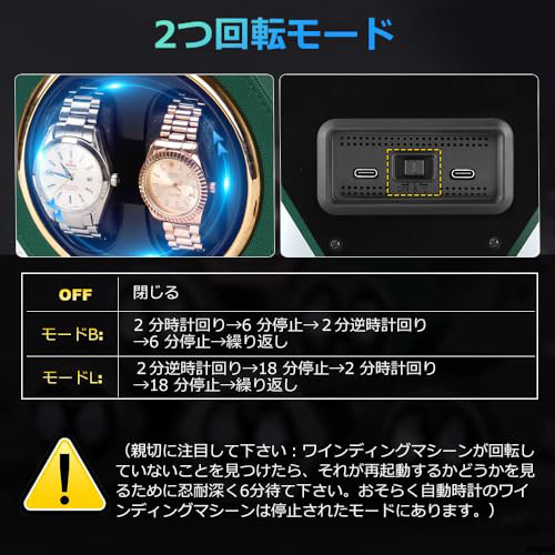 【静音×高級 自動巻き時計収納ワインディングマシーン】 時計巻き上げ機 2本巻き 高級PUレザー 時計ケース ブラックグリーン