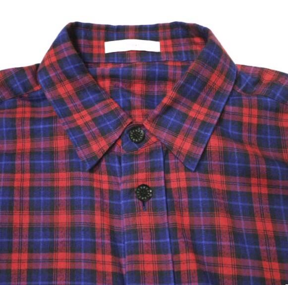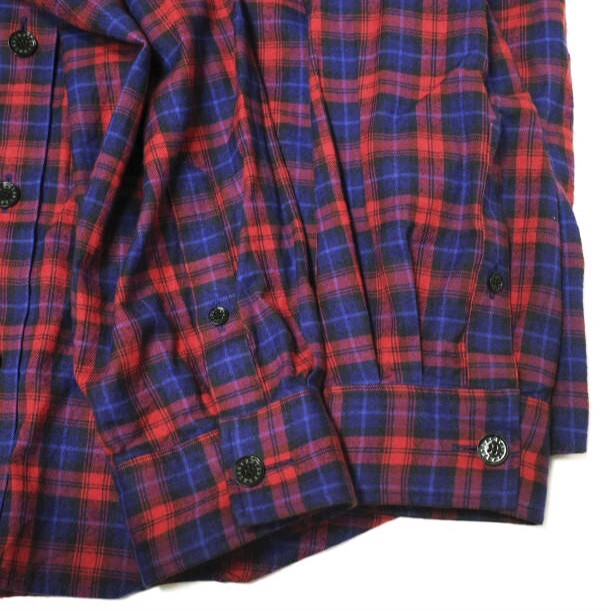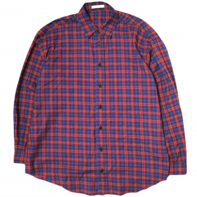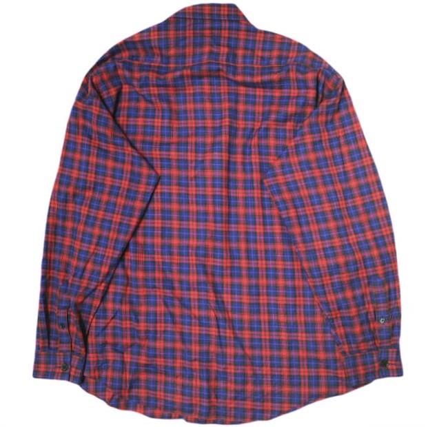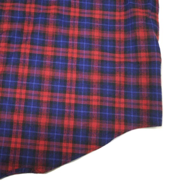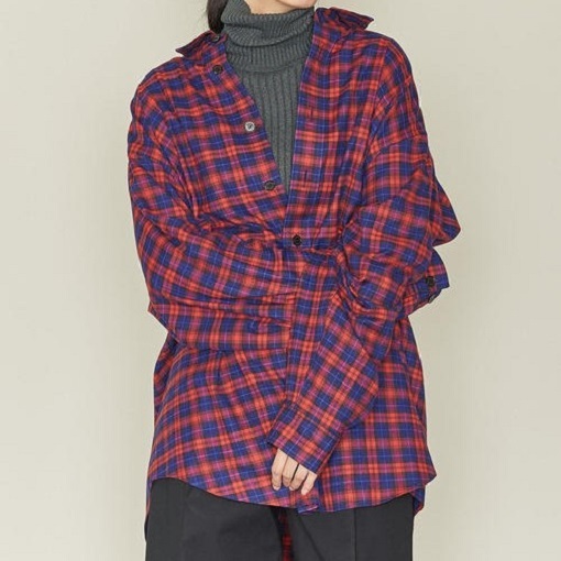 色鮮やかなレッドにブルーのラインが入ったチェック柄のオーバーサイズシャツ。