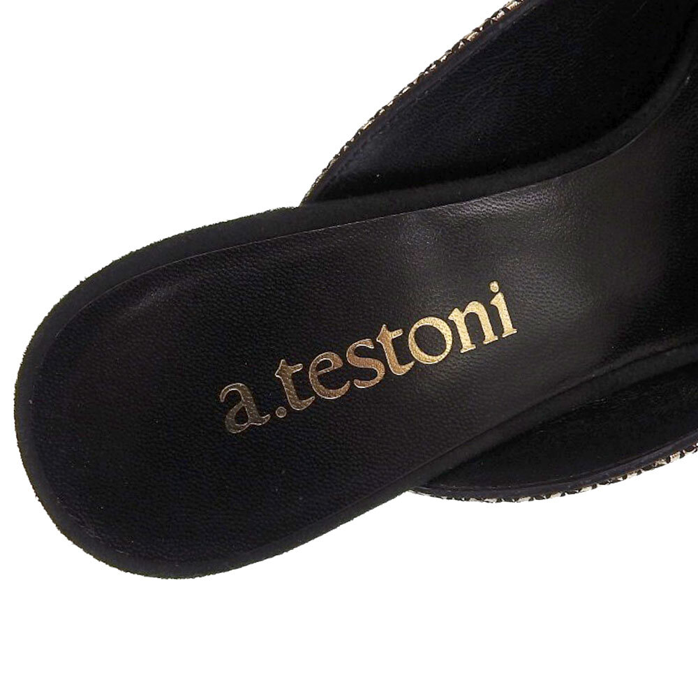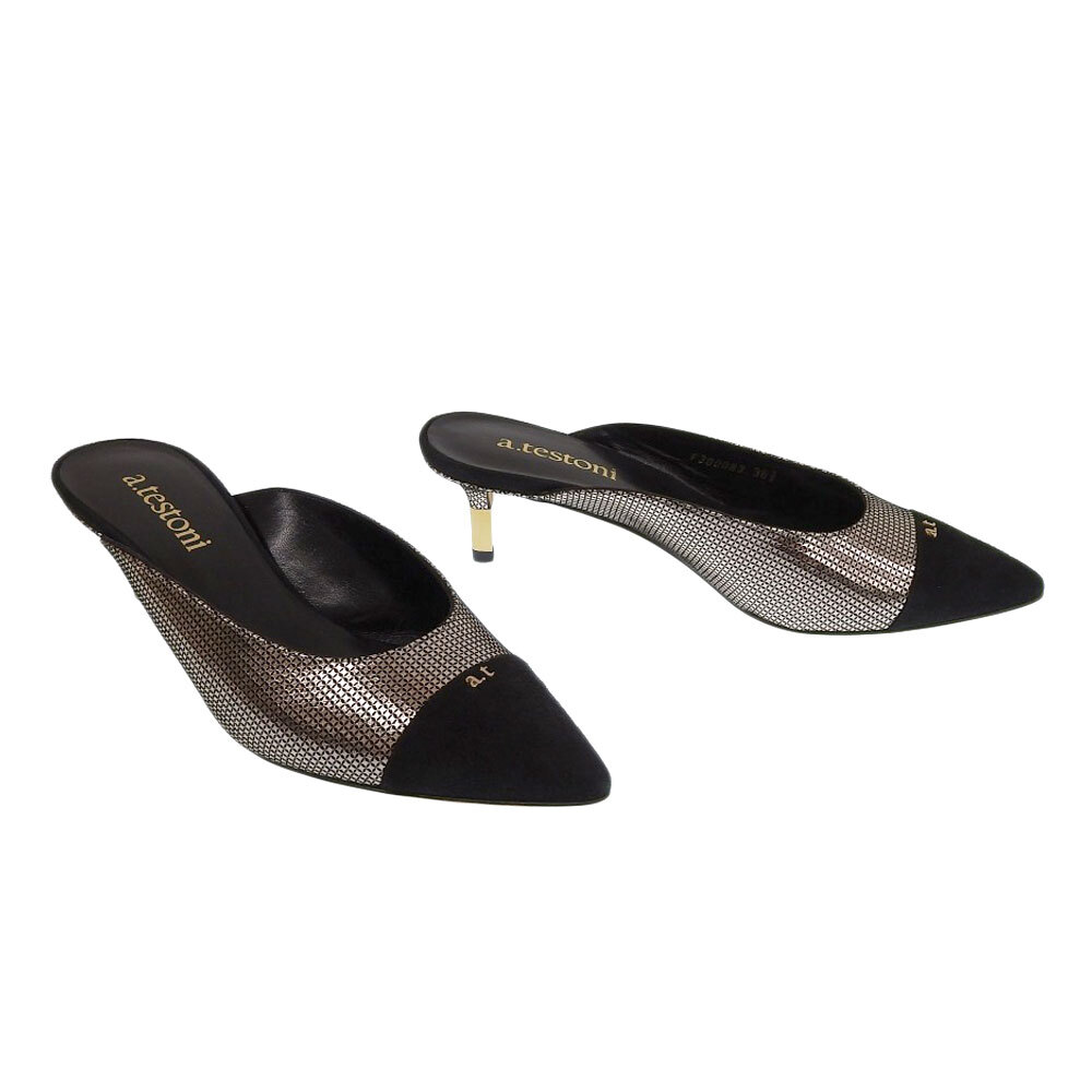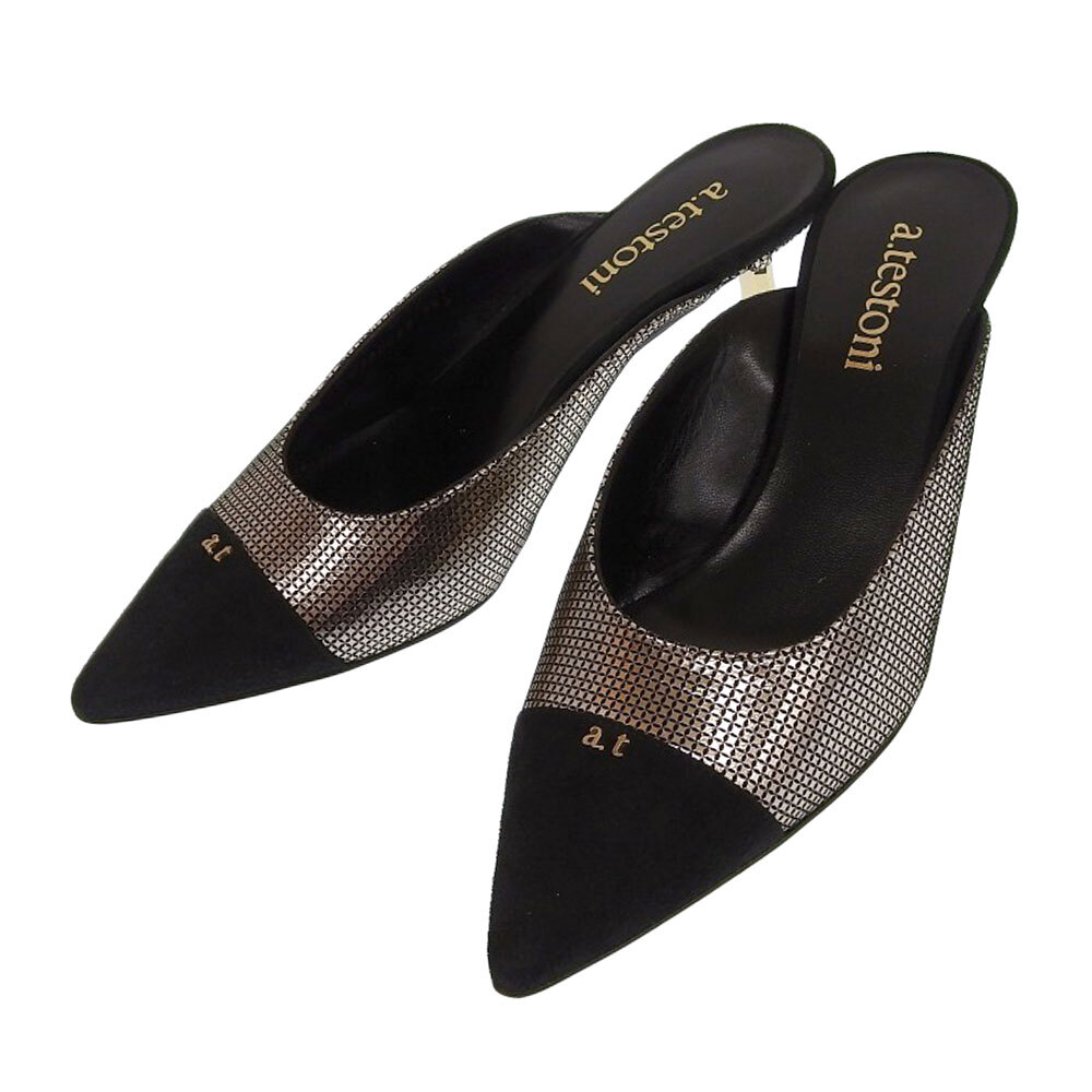 | 未使用 箱付 ア テストーニ a.testoni 現行販売商品 94658 ゴールドロゴ ポインテッドトゥ ミュール サンダル 36 1/2 23.5cm |