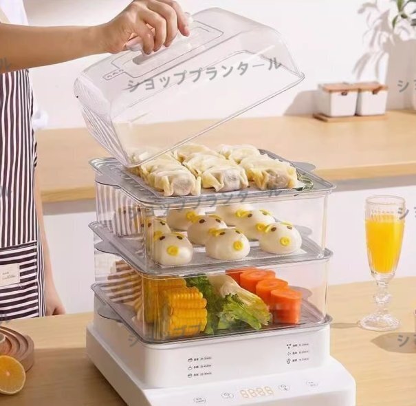 品質保証★ 電気蒸し器 3段 蒸し器 電気 スチームクッカー 22L 大容量 電気汽船 多機能 家庭用 24H予約タイマー/2H保温 U250
