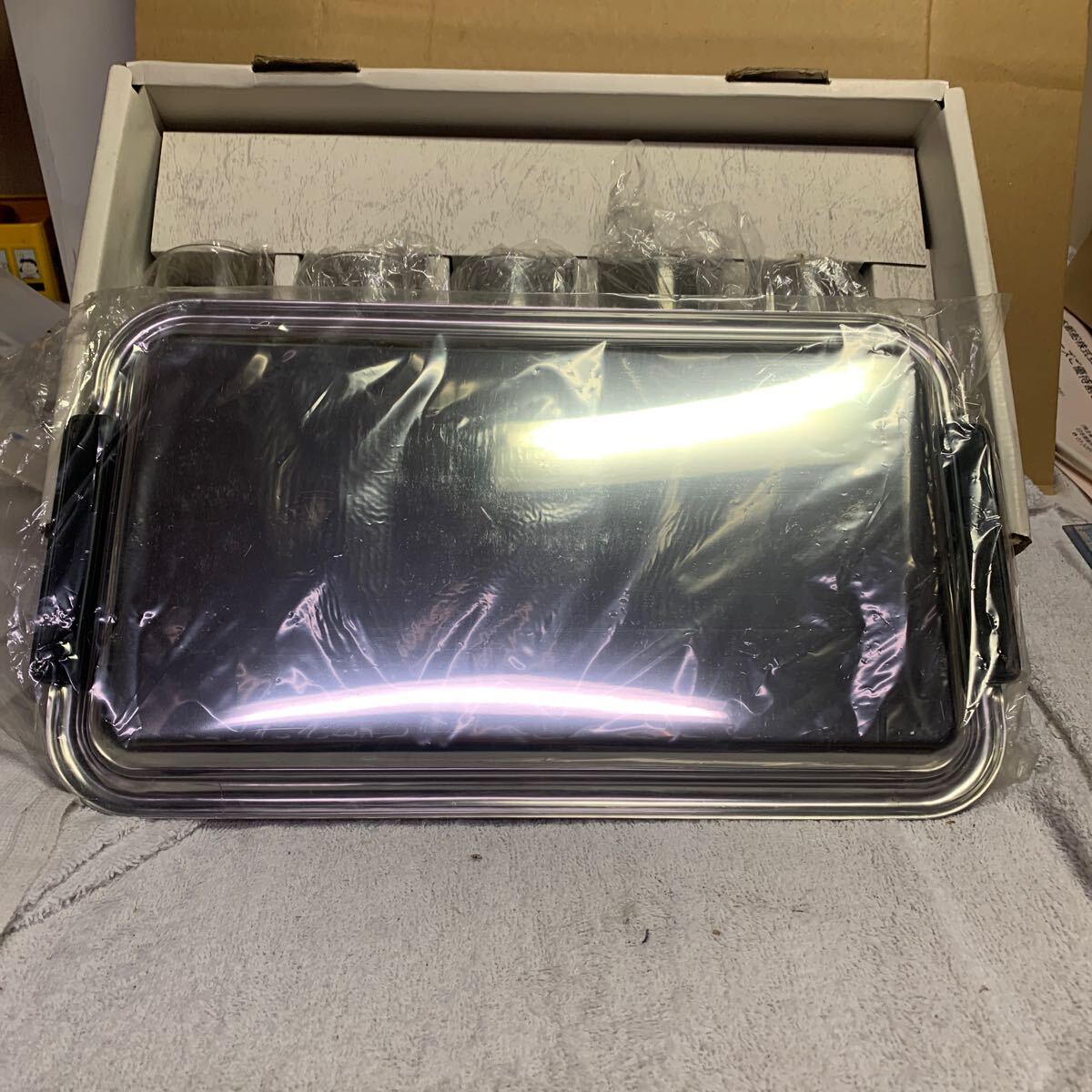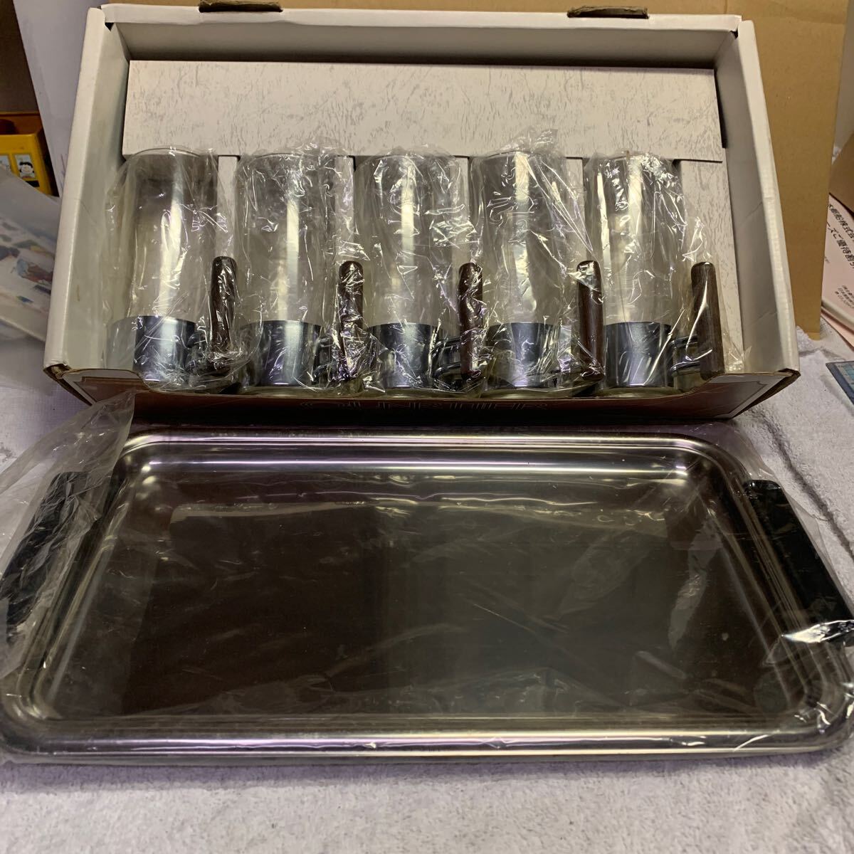 グラス直契約5.5センチ高さ約14センチトレー縦約19センチ横約35センチ長期保存品のためグラスに包等が見られます。外箱等も汚れがあります。運賃80サイズに収めるため、外箱を補強しての発送となります。ノークレームノーリターンでお願いします。