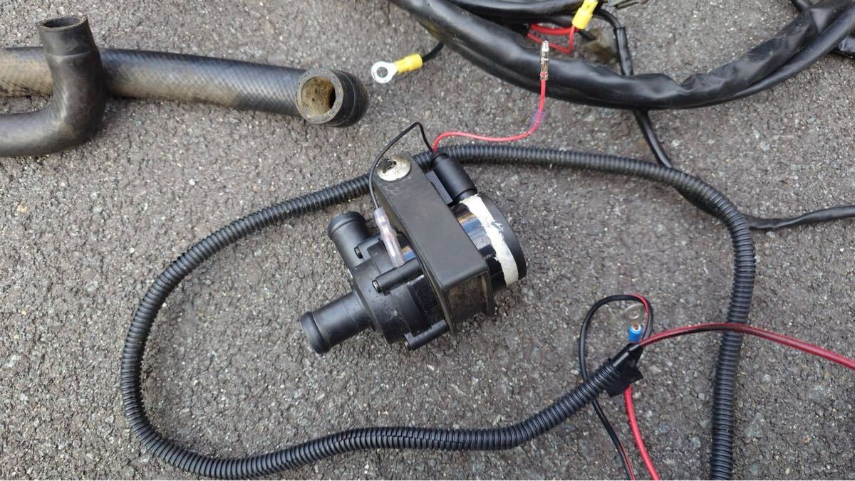 純正のウォーターポンプはベルトの付け外しが面倒だったのとフレームの方にポンプ取り付け用のステーが無かった為画像7の社外ポンプを使い電動化していました