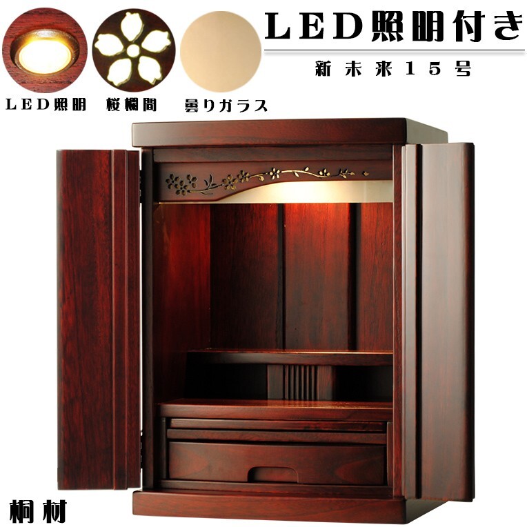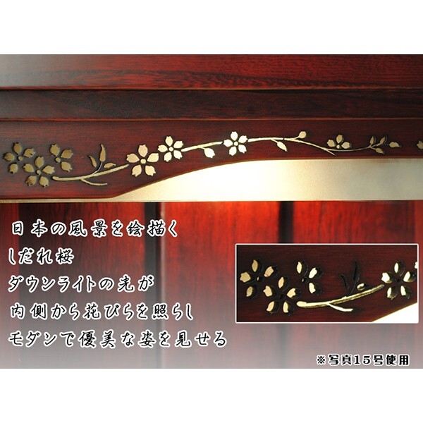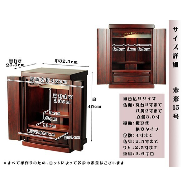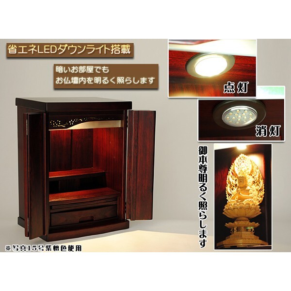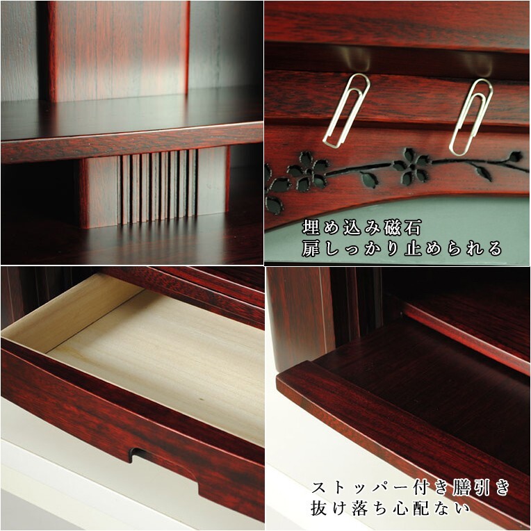 ※仏壇内部でローソクや線香の使用は禁止(火事の原因になります)、備え付けの膳引きをご利用ください
