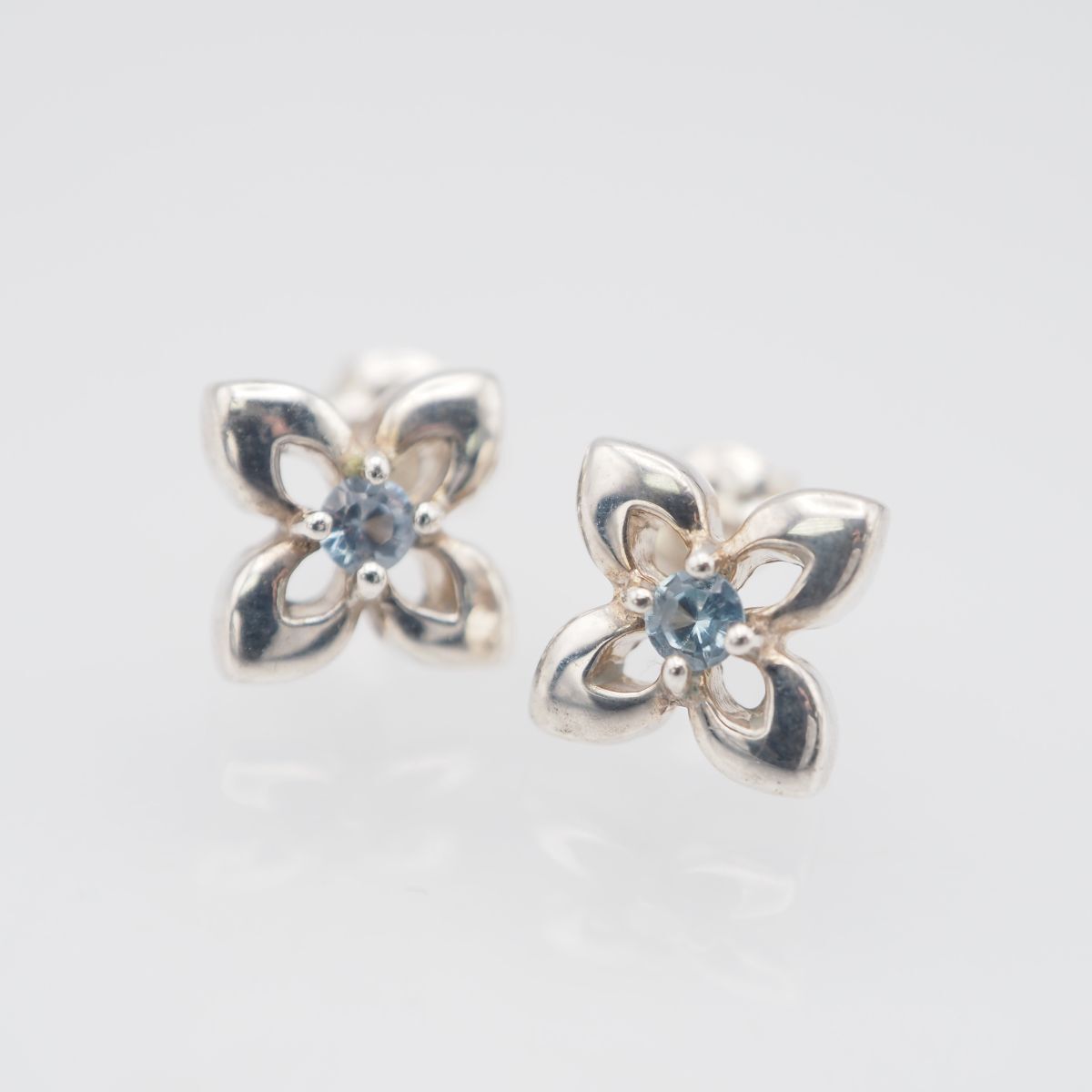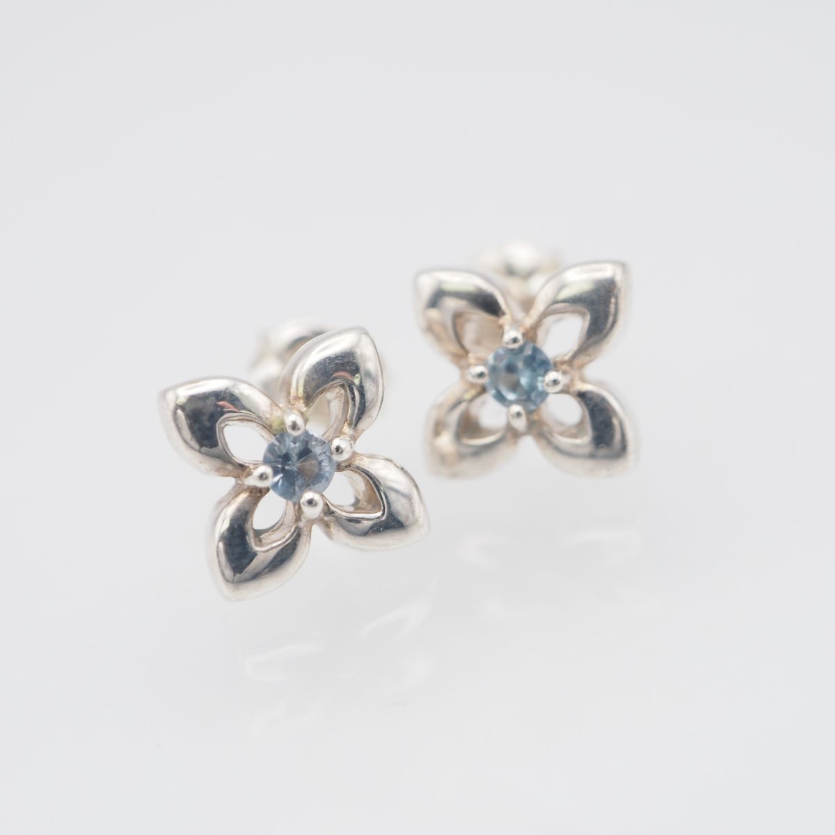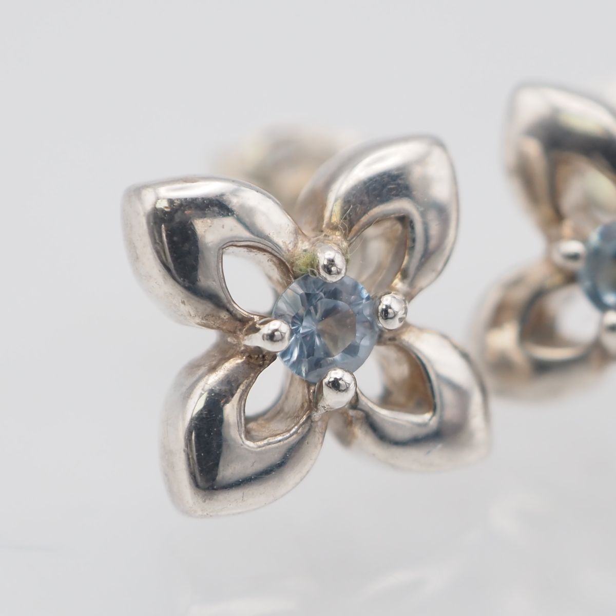 A224 ブルーストーン SV925刻印 ピアス フラワー デザイン シルバー