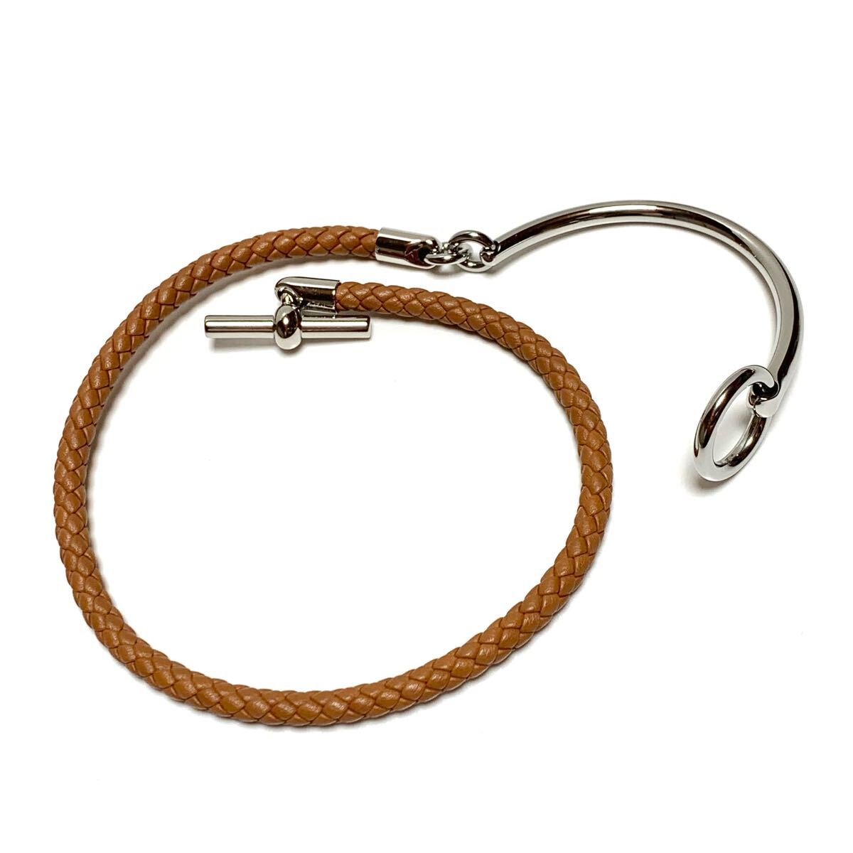 編み込まれた上質なレザーとシルバーの金具を組み合わせた高級感のあるデザインが◎