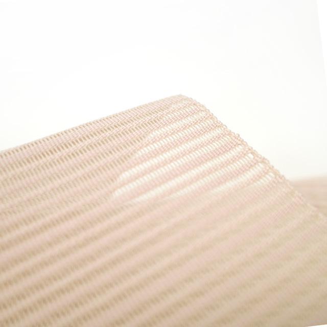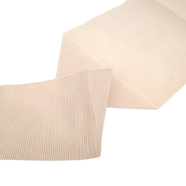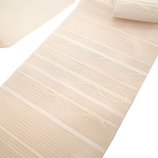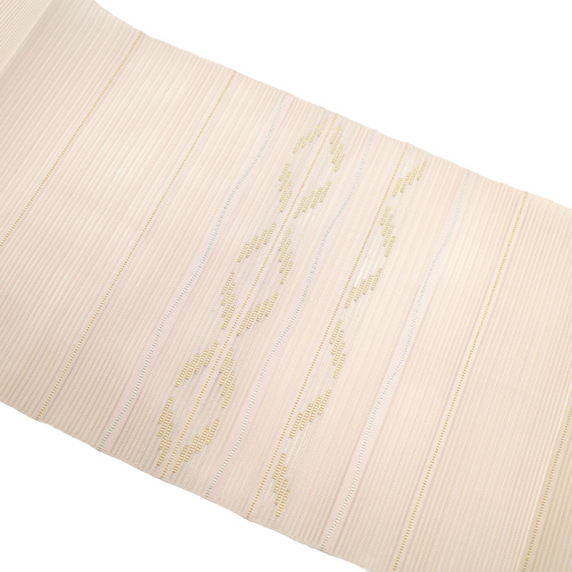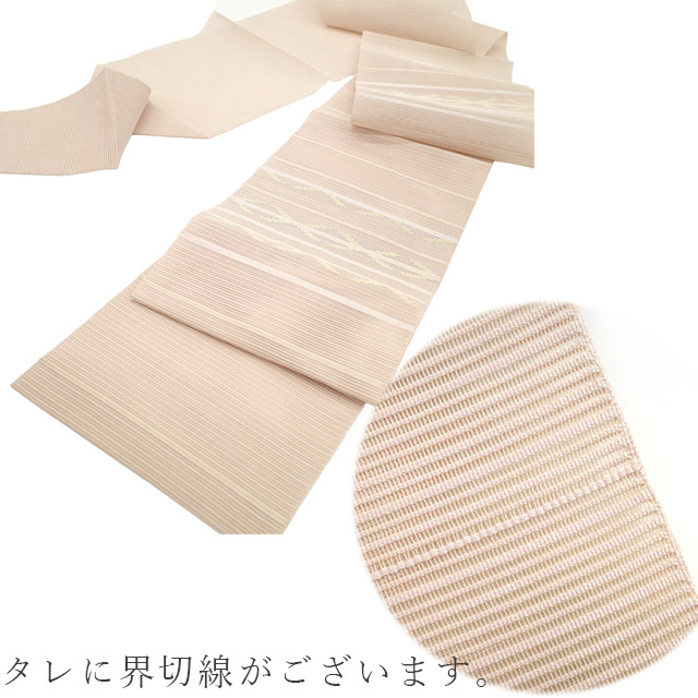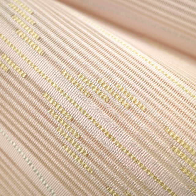 こちらのお品は、美しい透け感が素敵な 薄ピンクベージュ色地に、霞横段に丸文が織り出されたとてもおしゃれなデザインです。