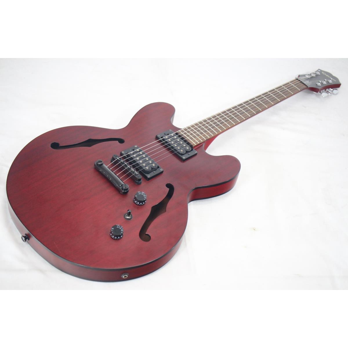 かの名機、ギブソン『ES-335』のエピフォン版、という立ち位置を担っていたDOTモデル!装飾を簡略化し価格を抑えたDOT STUDIOが入荷致しました!カラーは渋さ際立つWorn Cherry。安価ながらも、センターブロックを持ったホロウボディ構造によるエアー感を含んだサウンドがしっかりと楽しめます。ジャズやポップスをオシャレに弾くもよし、ロックに歪ませて弾くのも良し!往年の伝統的セミアコサウンドを手軽に味わいたい方に!