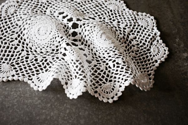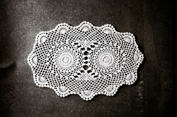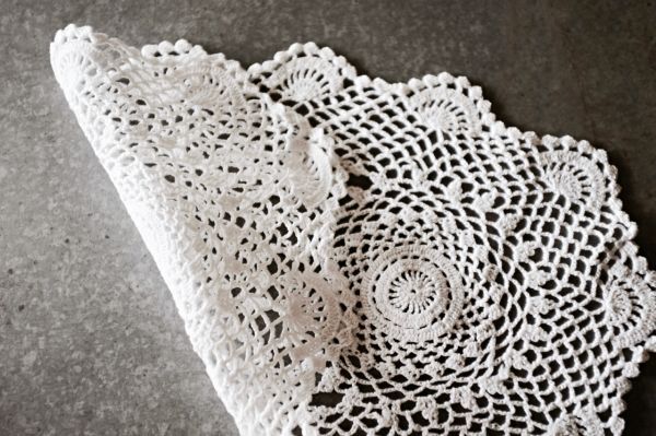 フランス 38c 手刺繍 双子の星々とレースドイリー ヴィンテージ コットン アンティーク レース ハンドメイド テーブルセンター レトロ