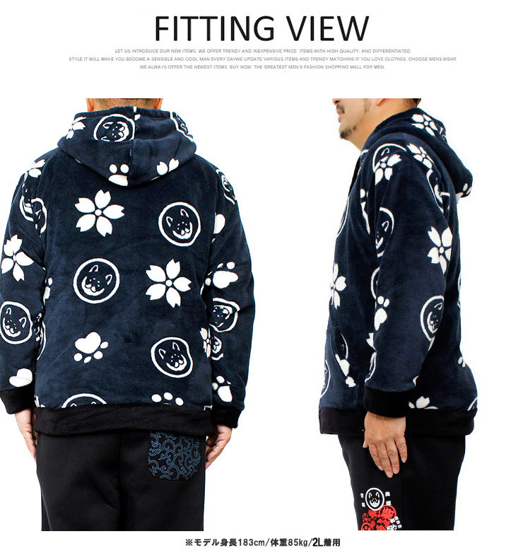商品名 | 【新品】 4L ブラック わんこ堂 パーカー メンズ 大きいサイズ もこもこ ボア フリース 京都発祥 ゆるキャラ 和んこ堂 |