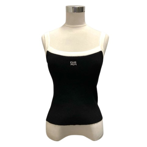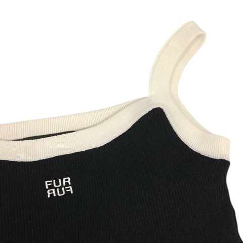 ファーファー furfur ニットキャミソール カップイン リブ ロゴ刺繍 F 黒 ブラック 白 ホワイト レディース