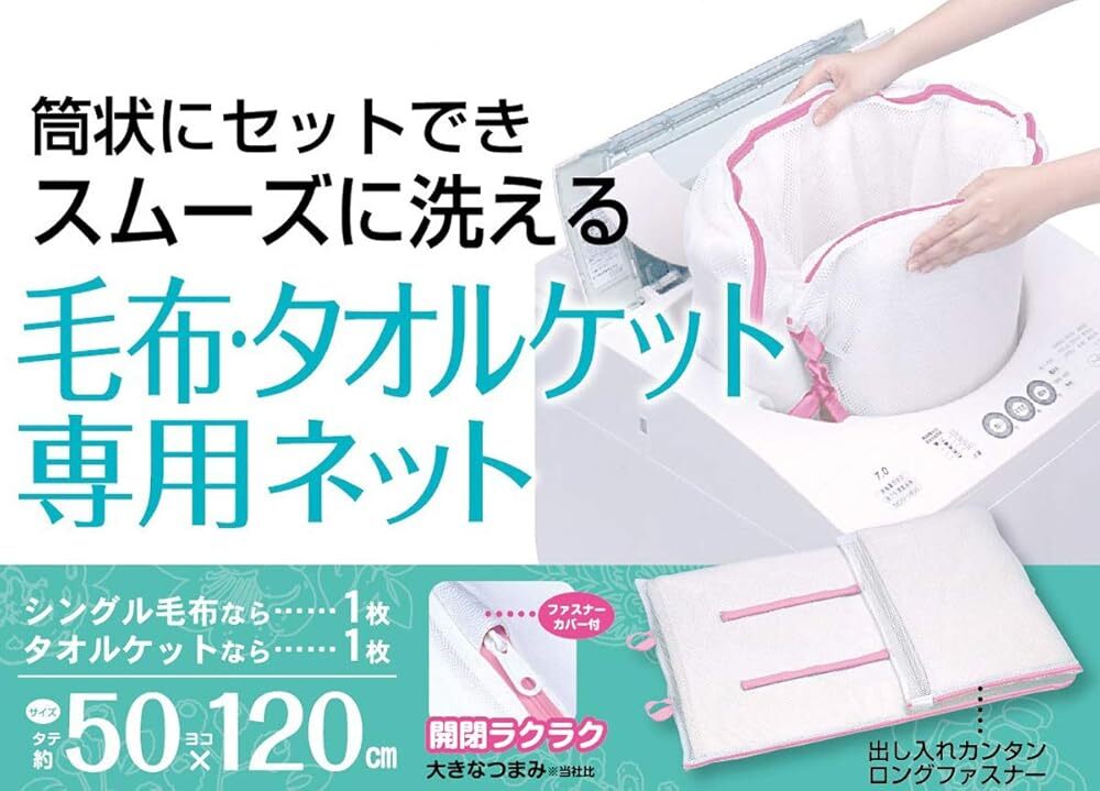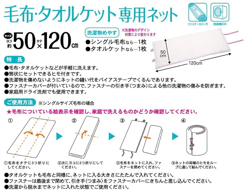 「商品情報」説明○毛布・タオルケットなどが手軽に洗えます。○筒状にセットできるヒモ付きです。○洗濯物を傷めないようにネットの縫い代をバイアステープでくるんであります。○ファスナーカバーが付いているのでファスナーの引き手(つまみ)による他の洗濯物の傷みを防ぎます。○家庭用ドライ洗剤でも使用できます。[洗濯物の目安]・シングル毛布なら…1枚・タオルケットなら…1枚商品サイズ(約):50x120cmポリエステル色 ネット:ホワイト ファスナー:ピンク「主な仕様」サイズ/幅50×高さ120cm商品モデル番号: TW23560素材: ポリエステル色 ネット:ホワイト ファスナー:ピンクパッケージ重量: 0.13 kg