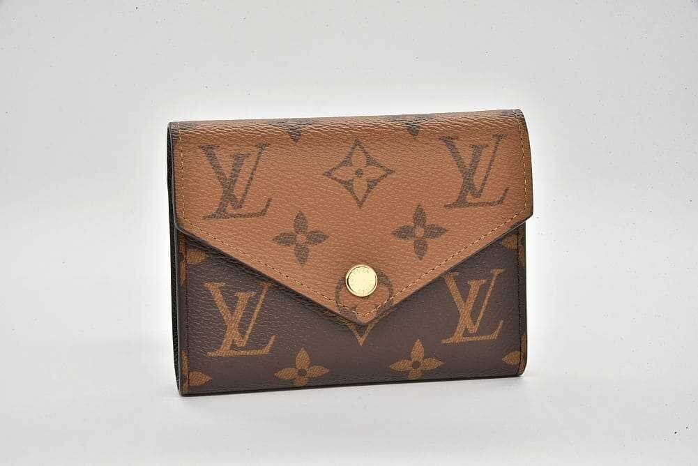 商品説明 | モノグラム・キャンバスとモノグラム・リバース キャンバスを組み合わせた三つ折り財布『ポルトフォイユ・ヴィクトリーヌ』でございます。 |