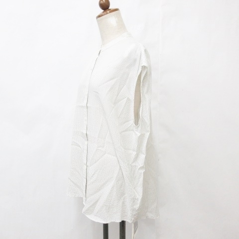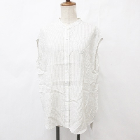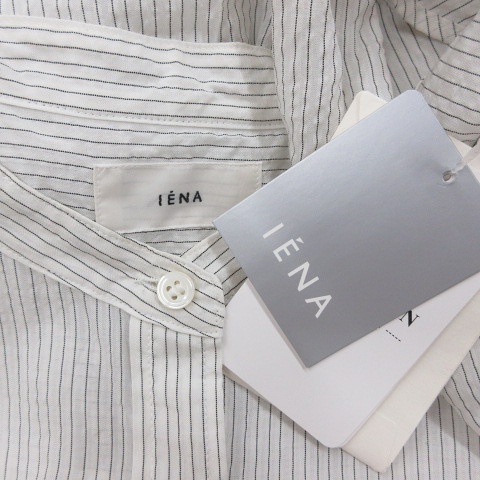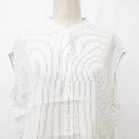 未使用品 イエナ IENA ブラウス シャツ ノースリーブ スタンドカラー ストライプ 白 黒 ホワイト ブラック 36