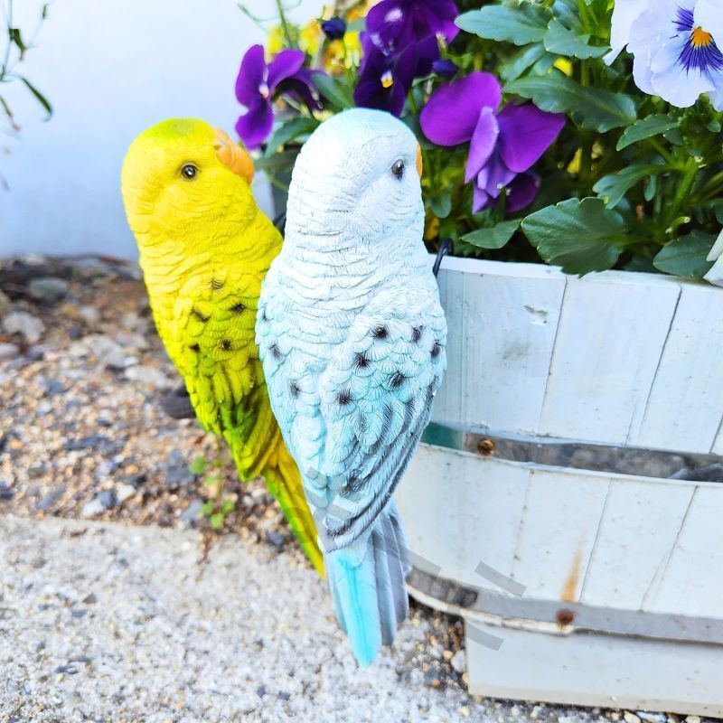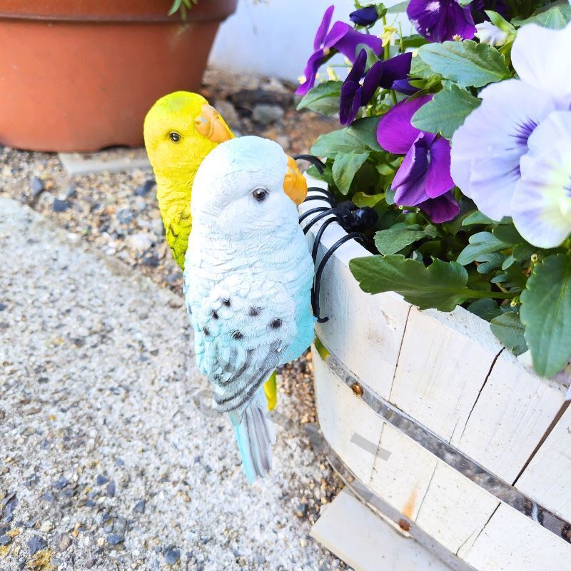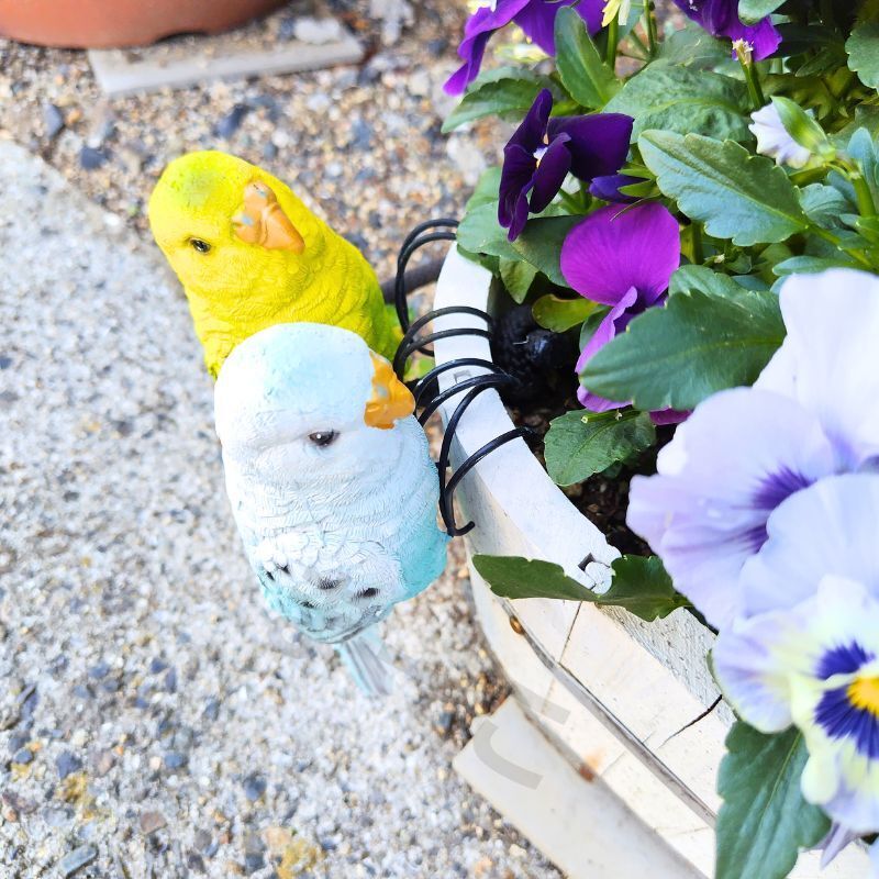 ガーデニング雑貨 鳥の置物 インテリア雑貨 ガーデンオブジェ セキセイインコ カラスよけ 植木鉢 プランター フェンス 園芸用品 2個セット