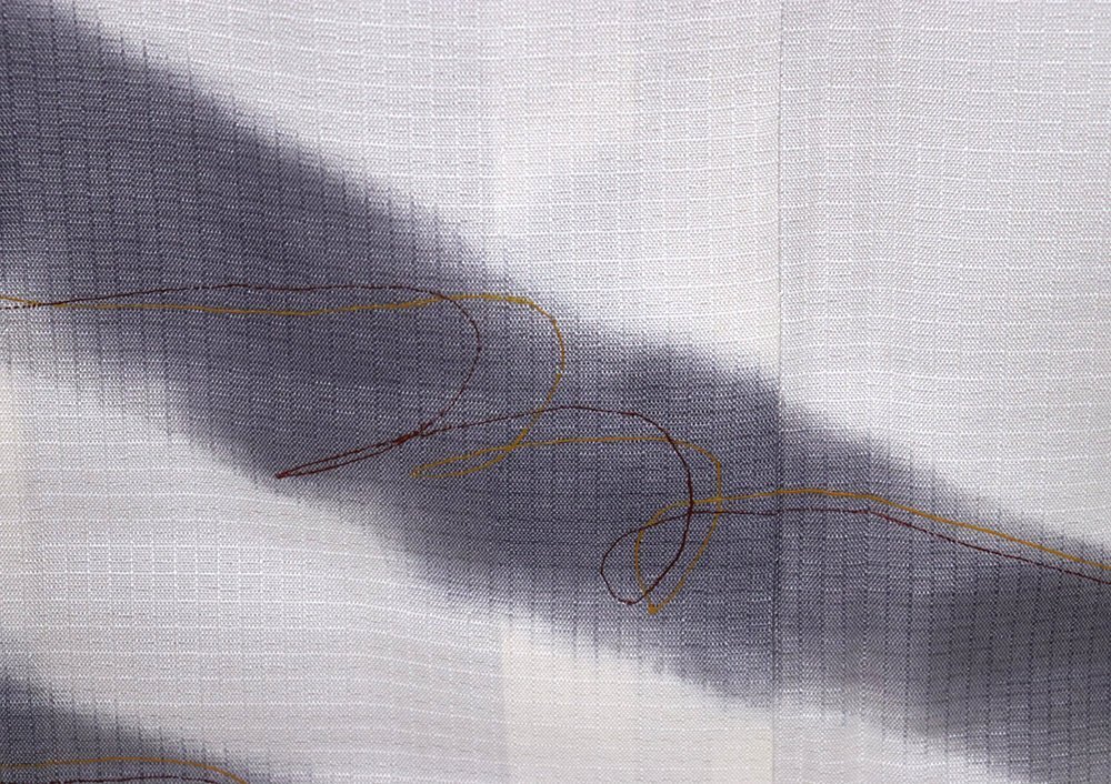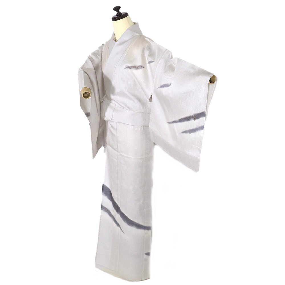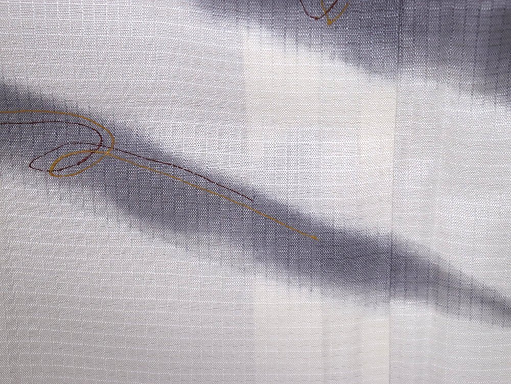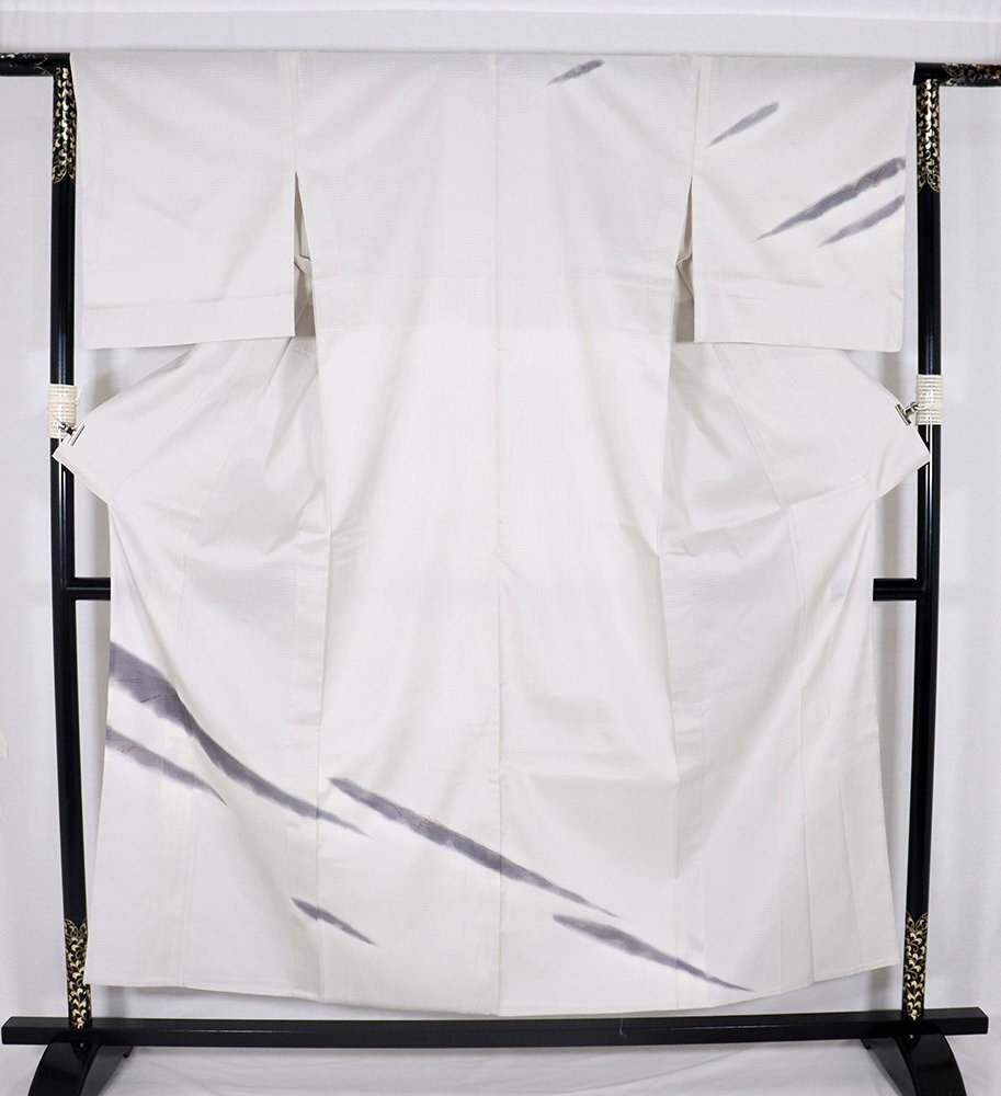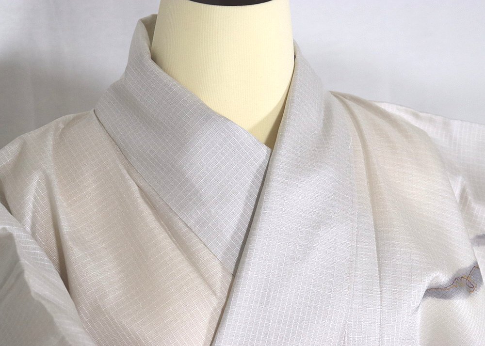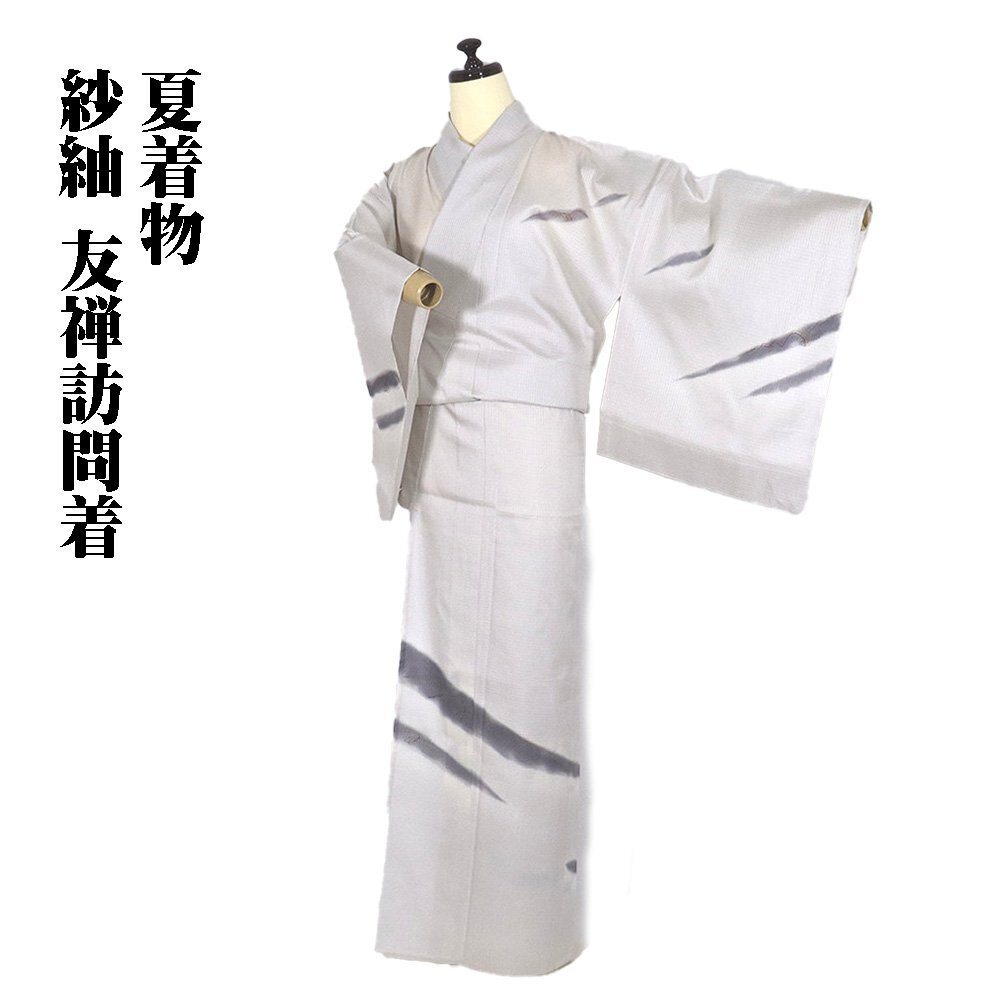 | 色・柄 | 紗紬 友禅訪問着 ライトグレー・小格子地 墨黒斜め縞 創作柄 (写真では上手く色が出ない場合があります。ご了承下さい) |