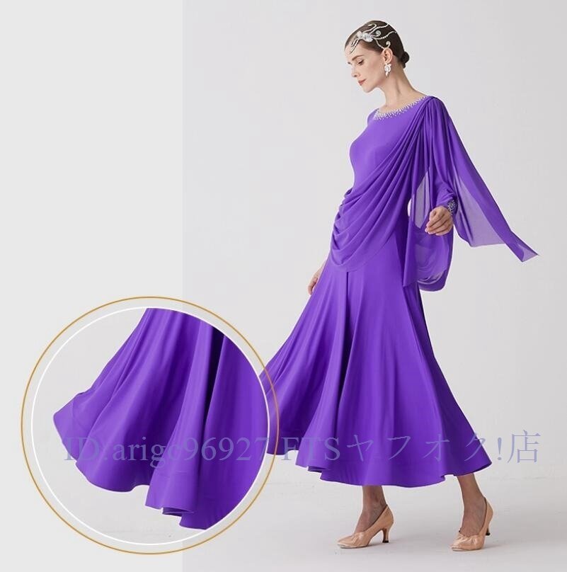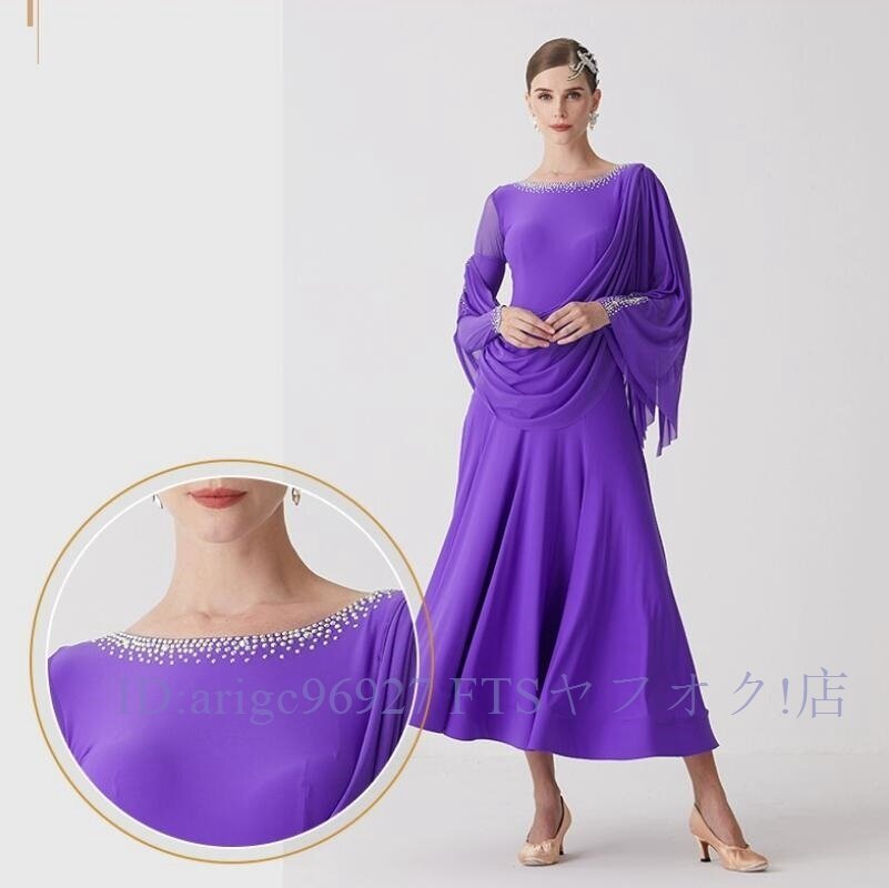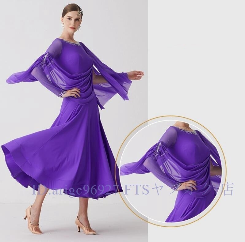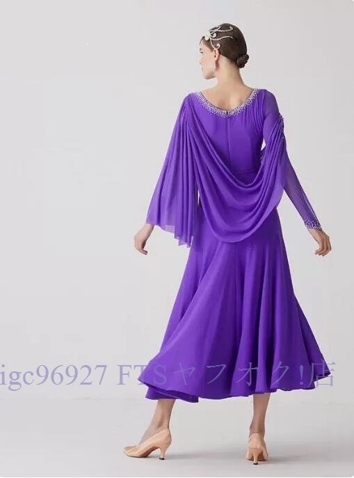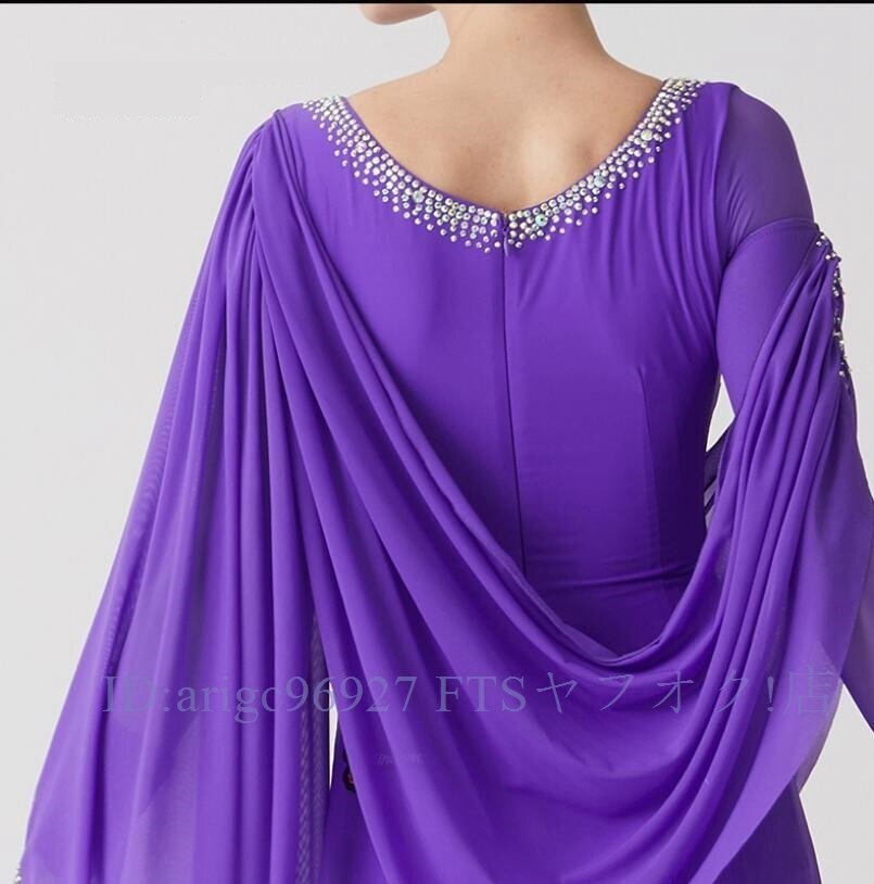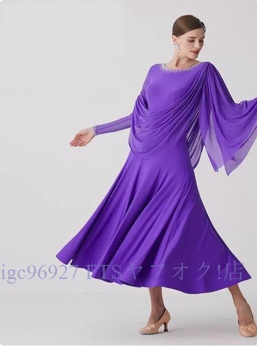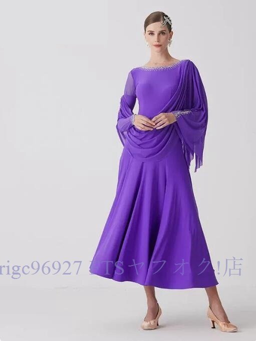 新品★ディース社交ダンス衣装 試合練習ドレス サイズセミオーダー モダンダンスドレス お洒落パープル ライトストーン飾り