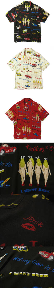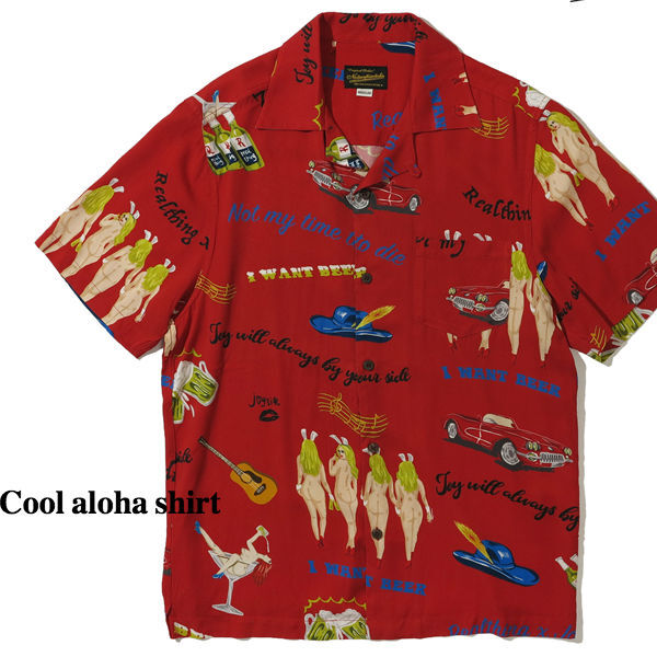 ★SUMMER 高級仕上げ I WANT BEER ヴィンテージ仕様 REAL THING アロハシャツ 赤 サイズS〜L アメカジ キューバ ロカビリー レトロ ★t460