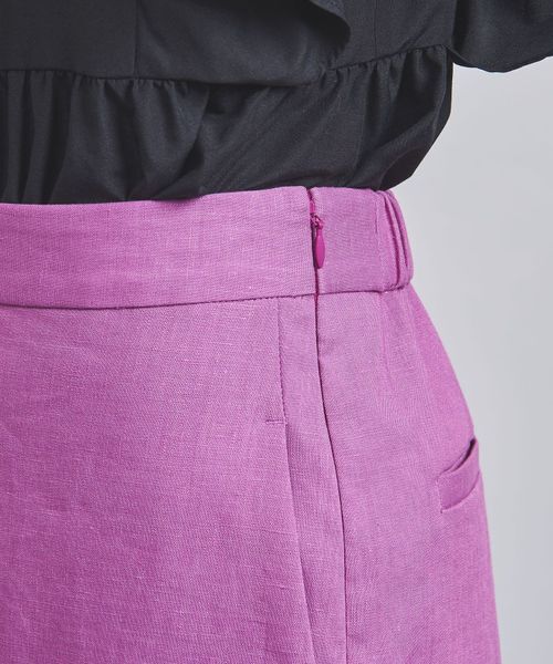 サイドにコンシールファスナーが施され、リネン・ポリエステル素材を使用したナチュラルな風合いの商品です。