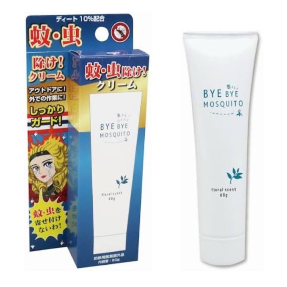 【2枚組】ハッカ・ゼラニウム・シトラスの香り!アルコール不使用!ディート10%配合!【BYE BYE MOSQUITO】虫よけクリーム2本2,780円が